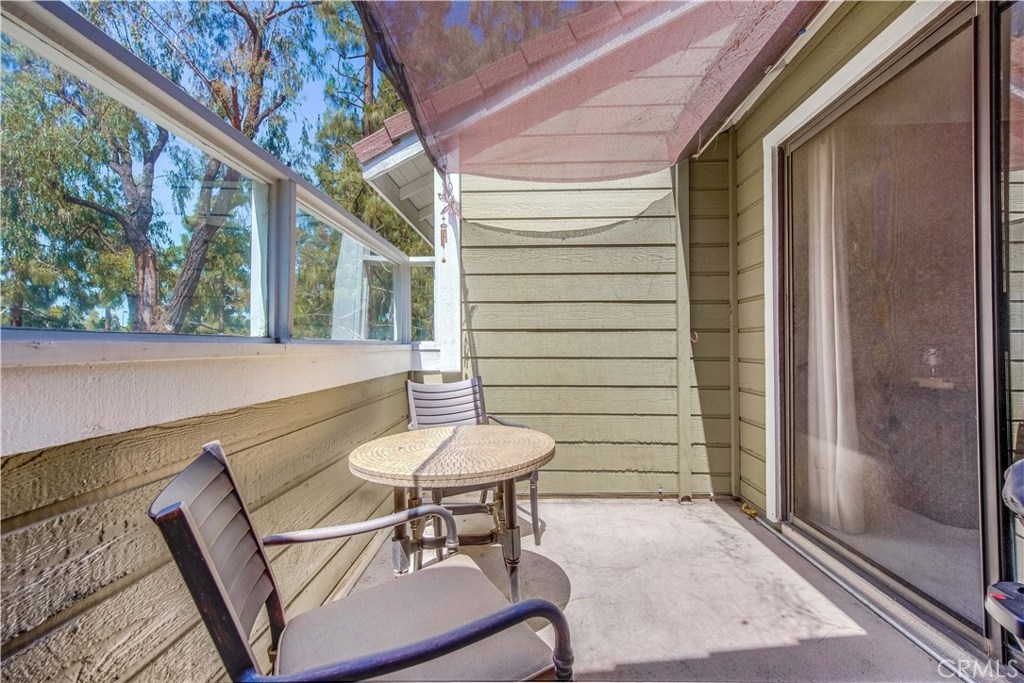 Enjoy living in this Heather Ridge upper level, end unit home featuring 2 bedrooms, 2 baths, 2 balconies and a 1 car garage +PLUS private parking for your 2nd car and guest parking. This plan is the largest in the community. It features a lovely master bedroom with private bath, walk in closet and access to a sunny balcony. The spacious second bedroom has direct access to the private front porch. The large living room has a cozy fireplace with gas logs, wiring for surround sound and features sliding glass doors opening to the front balcony. The chefs kitchen offers stainless steel appliances (including refrigerator), white cabinets, slab granite counters and a mosaic backsplash. The dining area leads to sliding glass doors opening to the rear balcony where you can enjoy BBQing with friends and family. Convenient laundry closet located within the unit, washer/dryer included. The garage offers custom built in storage racks. Enjoy the association tennis courts, pool & two spas. Water heater & furnace have been replaced. Close to shopping, dining, retail stores (Star Bucks, Costco, Whole Foods), Soka University, 73 Toll Road, Aliso Park and Wood Canyon Regional Park. Nearby award winning schools. Walk score ranks the Heather Ridge community as the SECOND most walk-able neighborhood in Aliso Viejo. NO MELLO ROOS.
