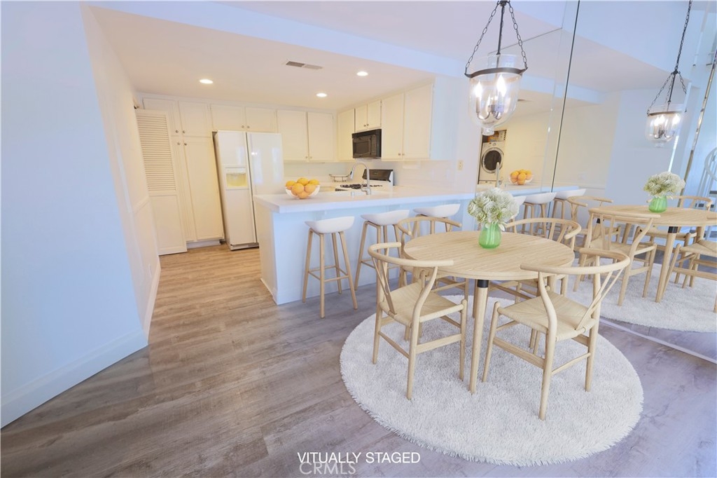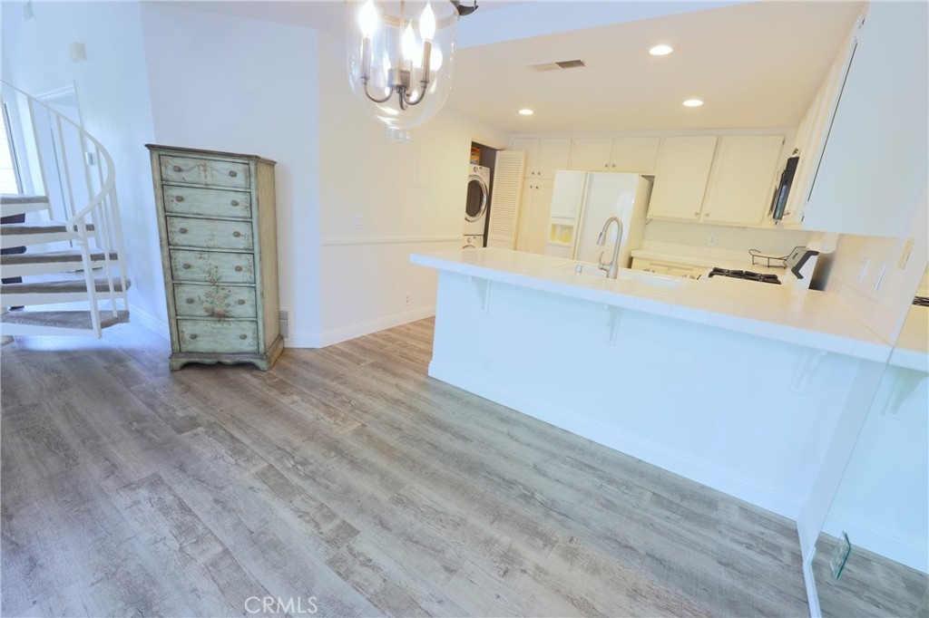 Welcome to your serene retreat in the heart of Aliso Viejo! Nestled in the tranquil community of Heather Ridge, this upper-level 2-bedroom, 2-bathroom unit offers an ideal blend of comfort and convenience. Step inside to discover freshly painted interiors that exude a light and bright ambiance, complemented by stylish vinyl flooring throughout. The kitchen features inside stackable laundry, perfect for effortless multitasking. Enjoy the luxury of privacy with no neighbors above or below, and unwind on your balcony patio, which is ideal for morning coffees or evening relaxation. For added convenience, a one-car garage underneath the unit ensures your vehicle is always secure. Outside, indulge in resort-style living with exclusive access to a sparkling pool, soothing spa, and well-maintained tennis courts within the community. Beyond your doorstep, embrace the vibrant Aliso Viejo lifestyle, boasting many amenities, including shopping, dining, and outdoor activities oh and don't forget Costco is in walking distance ! Don't miss the opportunity to make this peaceful haven yours—schedule your tour today and discover the charm of Aliso Viejo living! Water and Trash are included in HOA dues