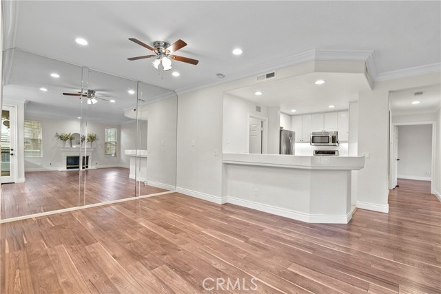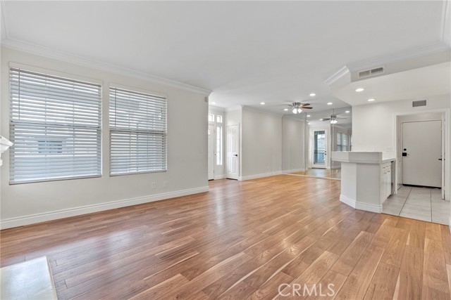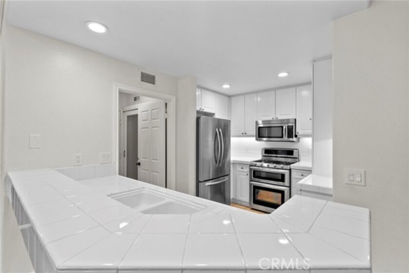 Welcome to this stunning upscale home in the prestigious community of La Mirage, that showcases fabulous architecture with a very rare single level home with large patio. Fantastic community amenities which include a relaxing pool and spa, vibrant tennis court, lovely clubhouse and BBQ area. This large 2B/ 2BA single story upgraded home is an end unit and can be accessed either by the disability friendly ramp or stair access for your convenience. Very light, open and airy floor plan with extra high ceilings provide a feeling of added spaciousness. The kitchen is adorned by S/S appliances including a refrigerator. Brand new kitchen faucet sink has been installed (after photos were taken). Separate laundry area is equipped with washer and dryer and lots of cabinets. Attached 1 car direct access garage with windows and an assigned parking space directly across from the house. Super convenient! Both bathrooms are large and bright. The master bedroom has a walk in closet with closet organizers. Lovely outdoor patio has a serene setting. Heating and air conditioning units are less than a year old, and home was repiped with Pex in 2014. Directly across the street from Soka University and close to lots of hiking and biking trails. 120 La Mirage is located in Building 7. This community has a very low turnover, and is in high demand, so do not miss this opportunity!