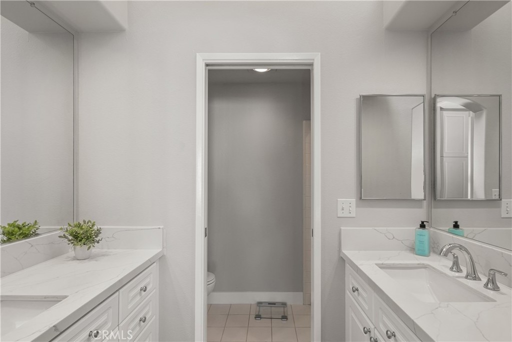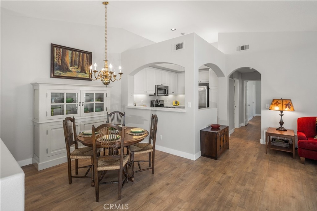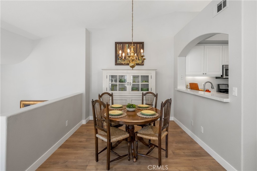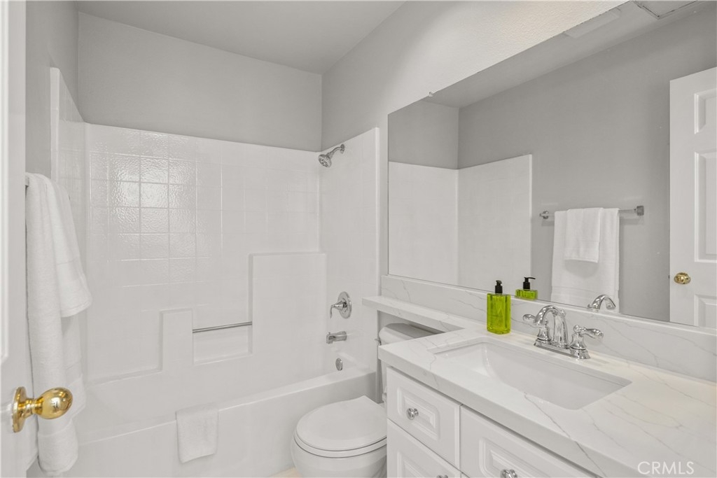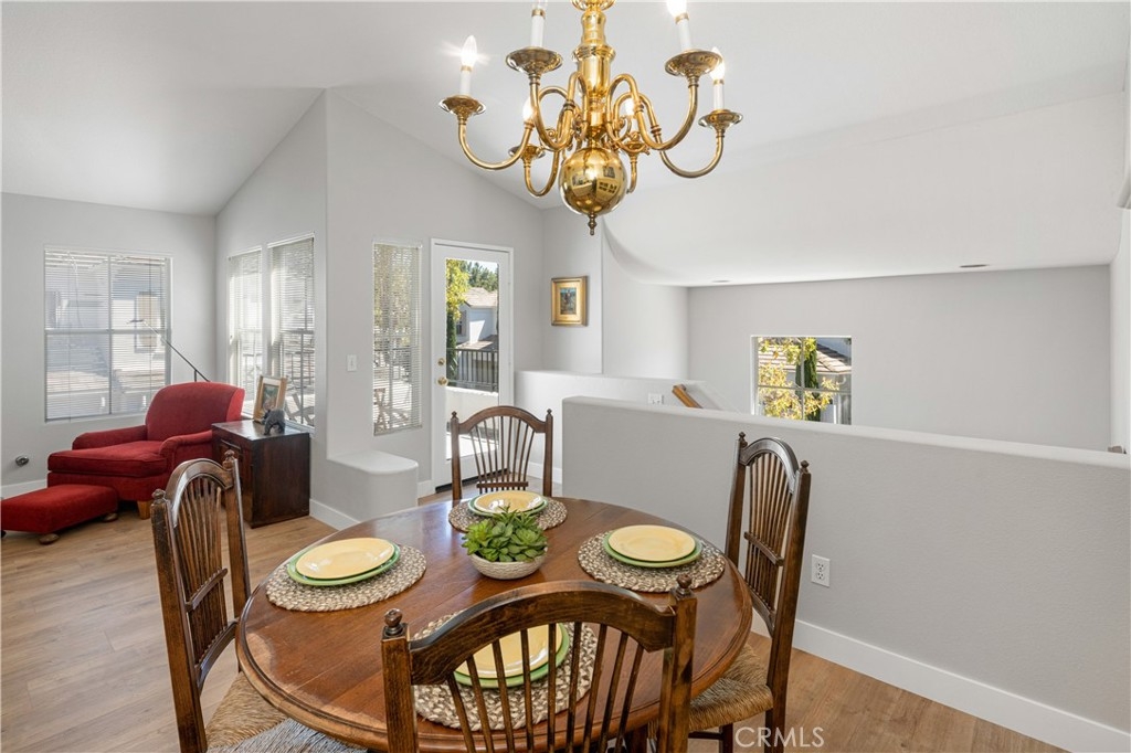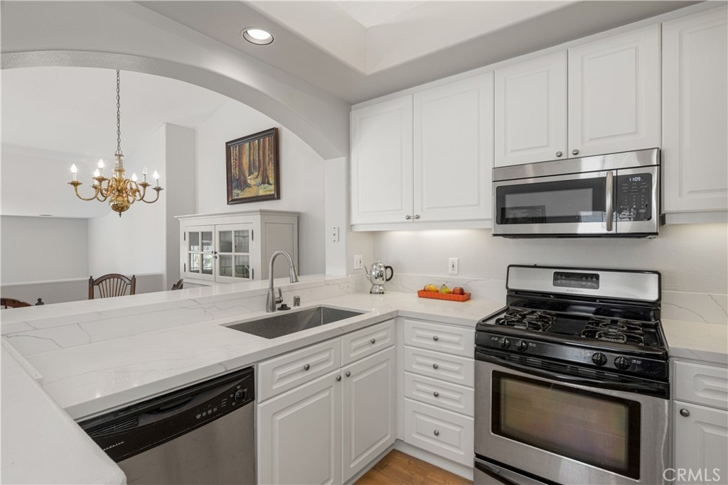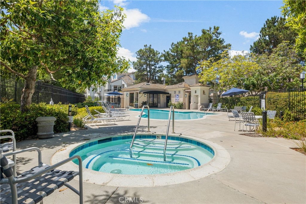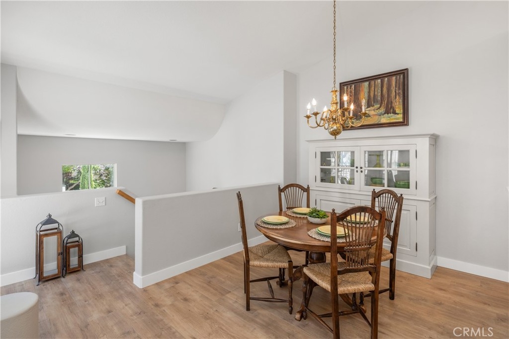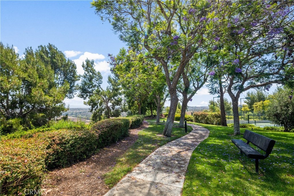 Welcome to this carriage-style end-unit, newly upgraded throughout, where refined finishes meet serene surroundings. From the moment you step inside, you’re greeted by soaring ceilings and a graceful curved staircase that sets the tone for the home’s thoughtful design. This desirable layout offers the ultimate in privacy with no neighbors above or below, and features a bright, open floorplan anchored by a charming fireplace, vaulted ceilings, and richly hued wood-look durable waterproof flooring. Light and bright all day long, the home has fresh interior and exterior paint and fixtures, lending a neat, clean feel. The kitchen with breakfast bar has been tastefully updated with quartz countertops, stainless steel appliances, a new deep stainless sink, new microwave, and new garbage disposal, refrigerator is included. Both bathrooms have been refreshed with newly painted cabinetry, while the primary suite provides a peaceful retreat with quartz countertop dual vanities, a walk-in shower, and a spacious walk-in closet with custom built-ins. A full-size interior laundry room with its own storage closet adds everyday convenience, while recent upgrades such as a new HVAC system, epoxy-coated plumbing, and a newly painted fireplace ensure lasting comfort and style. Step outside onto your private balcony and take in majestic views of Aliso & Wood Canyons Wilderness Park and the Saddleback Valley, with an HOA-scheduled epoxy coating for the deck coming soon. The oversized, direct-access garage is enhanced by storage shelving and ceiling-mounted racks, and the home includes an additional reserved parking space. Located in the award-winning La Mirage community, recognized for its architectural design, residents enjoy resort-style amenities including a sparkling pool and spa, BBQ areas, lighted tennis court, clubhouse, and included trash service. Perfectly situated near award-winning schools, scenic hiking trails, Soka University, and just minutes from the Aliso Viejo Town Center’s shops, restaurants, and theater, this turnkey home offers the best of Southern California living.