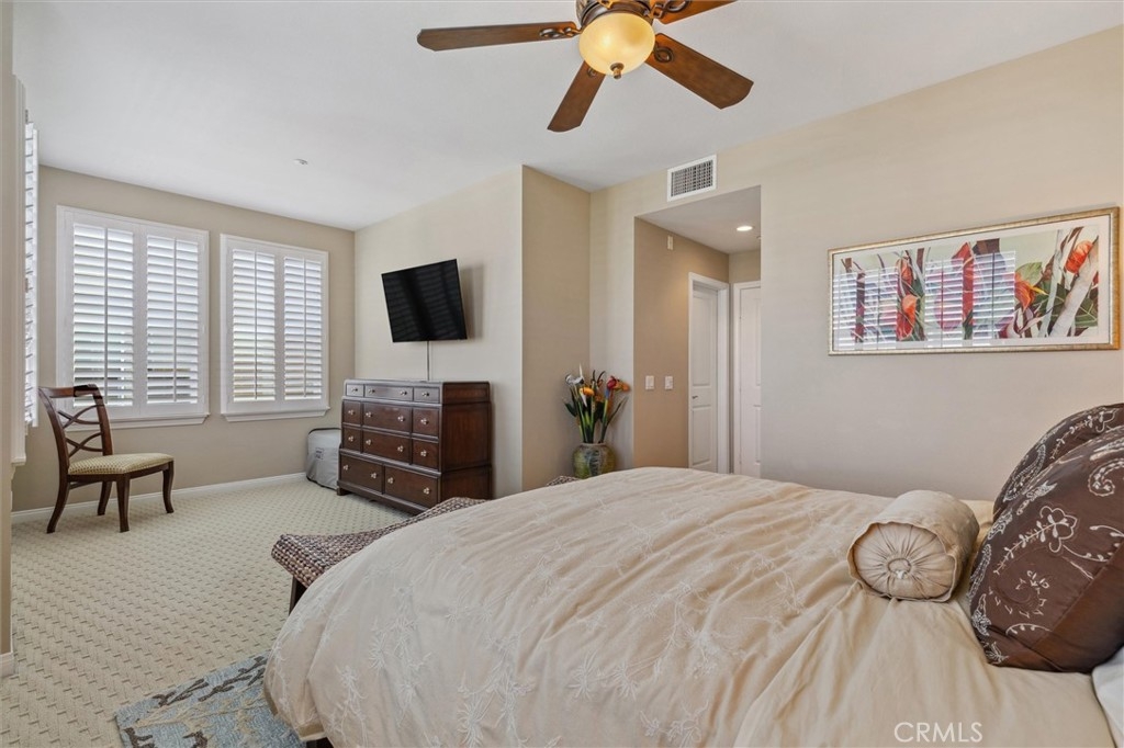 Welcome to this beautifully upgraded 3-bedroom, 2.5-bathroom home, ideally located in the highly desirable Vantis community-one of the most sought-after urban inspired neighborhoods in the area. This stylish residence features an open-concept Plan 4ABall layout with soaring high ceilings. The elegant plantation shutters throughout create a bright and inviting atmosphere. The show-stopping kitchen includes a massive sail-shaped island, custom cabinetry, and premium finishes, perfect for both everyday living and entertaining. A cozy fireplace anchors the main living space, while additional custom built-ins add both character and functionality throughout the home. All bedrooms offer generous space, with mirrored wardrobe doors, walk-in closets, and a Jack and Jill bathroom connecting the guest rooms. The third bedroom can easily function as a dedicated home office. Additional highlights include a side-by-side two-car garage with shelving, a private front patio. As a resident of the Vantis community, you’ll enjoy access to resort-style amenities, including a luxurious swimming pool and a fully equipped fitness center, just steps from your front door – while behind you are sunrise views and walking trails to all the new Town Center attractions making this the perfect blend of upscale living and modern convenience.