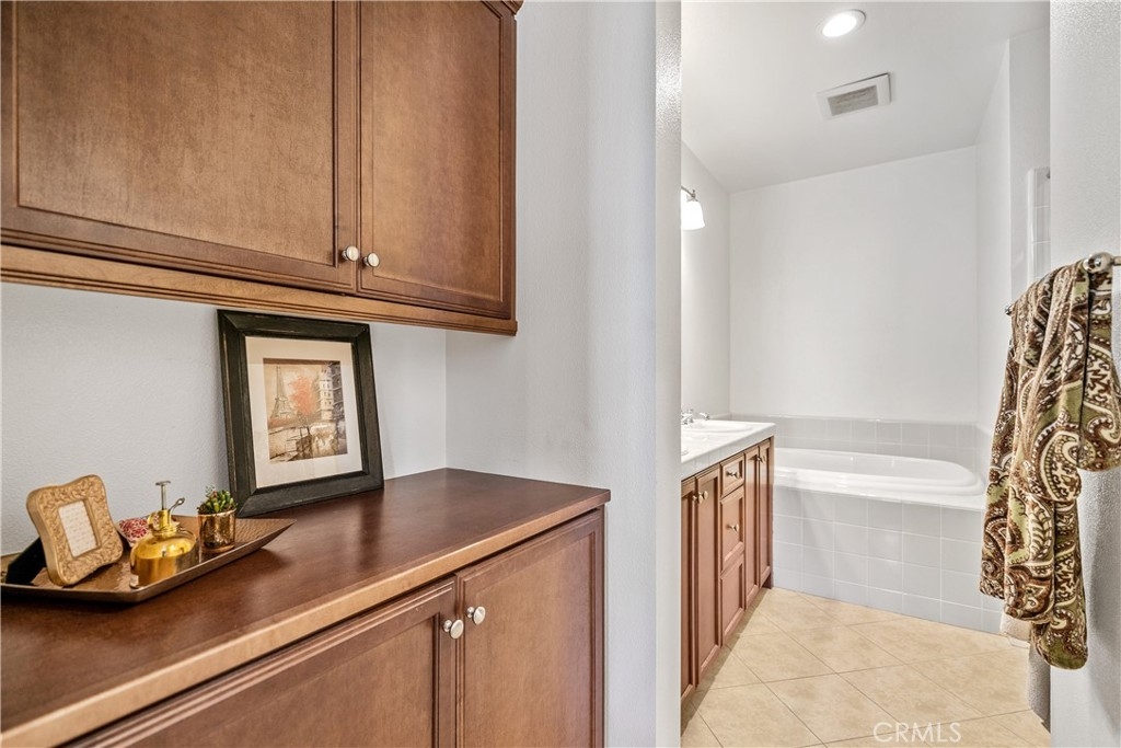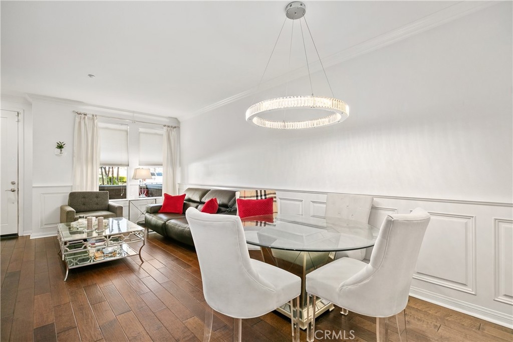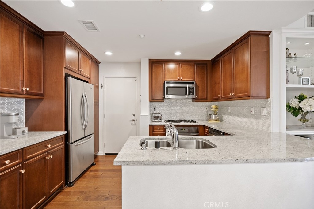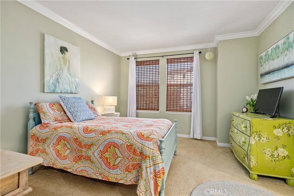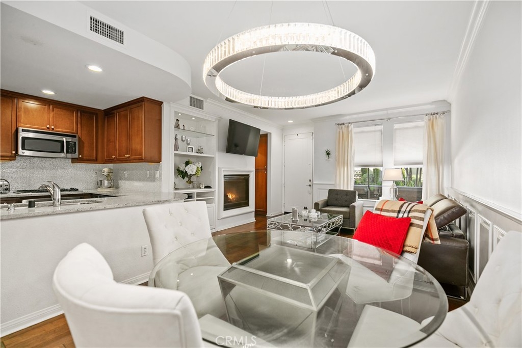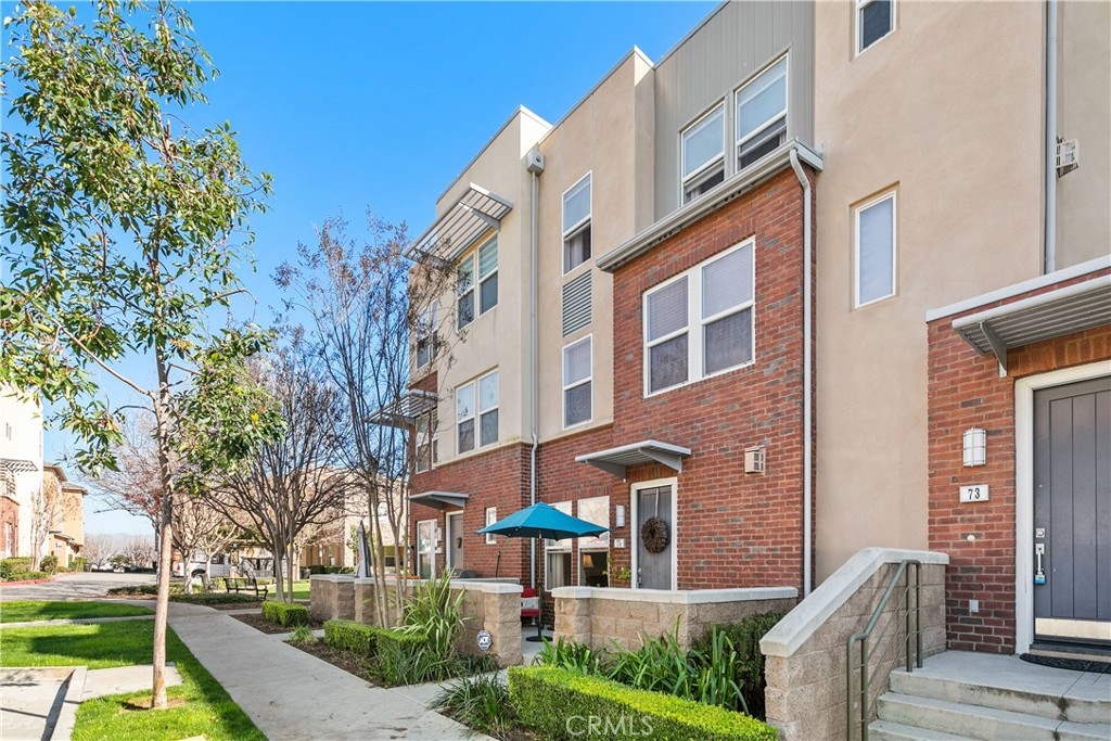 Bright and airy townhome located in the desirable Vantis Community of Aliso Viejo. This tastefully upgraded townhome boasts a 1,638 sq ft floorplan with 2 master suites, 2.5 bathrooms and an extra-long 2 car garage. Entering from the front porch you pass into the spacious ground floor living and dining room upgraded with custom media niche, gas burning fireplace, hardwood flooring, crystal chandelier, crown molding and wainscoting. The adjacent gourmet style kitchen is a chefs delight featuring abundant counter space and cabinet storage, stainless steel appliances, and designer granite and glass backsplash. The master suites are located on separate floors providing the utmost in privacy. Both masters feature large walk-in closets, dual vanity sinks, deep soaking tubs and separate glass enclosed showers. The large front porch is perfect for morning coffee or relaxing day end. The full sized walk-in laundry room has ample cabinet storage and is conveniently located on the second floor. As an added bonus this home is its located near relaxing greenbelt and guest parking is located just across from the entry. Community amenities include association pool and spa, private gym, outdoor fireplaces, and clubhouse. Conveniently located near the 73 Toll Way and a short walk to the Town Center with Edwards movie theater, shopping and a multitude of restaurants.