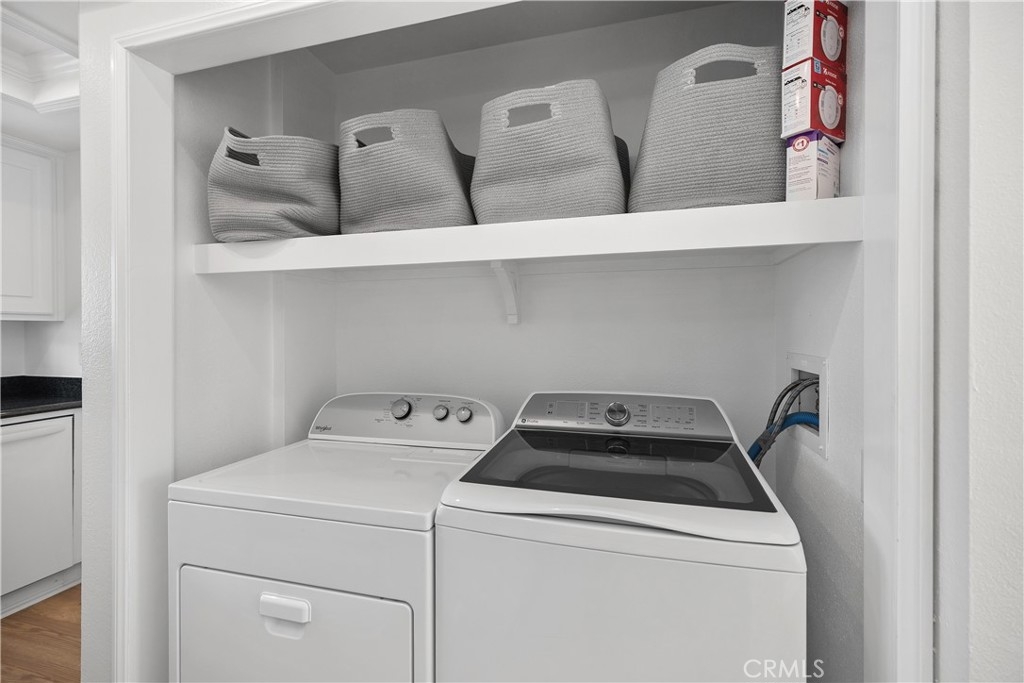 Tucked away in the serene community of Morningside Terrace, this two-level unit offers privacy with no units above or below. Brand new LVP flooring and paint throughout. The floor plan is both functional and inviting, with living and entertaining areas separated from the upstairs bedrooms. The home features a newer water heater and includes a newer washer and dryer as well. The kitchen offers spacious counters and an inviting bay window. The open concept living and dining areas lead to a private patio to the rear. Upstairs, the primary bedroom offers a peaceful escape with a brand new balcony and private access to a full bathroom. A second generously sized bedroom boasts great natural light and makes for a perfect guest room, home office, or kids’ space. Ideally located, this home places you within walking distance to Costco and the Marketplace at Laguna Niguel—which includes a Pavilions grocery store, Walmart, and plenty of other retail and dining options. Whether you're starting a new chapter or looking for a place to grow, Morningside Terrace combines peaceful living with unbeatable access to everyday essentials.