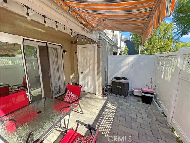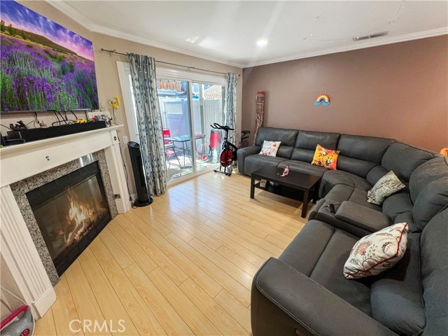 Charming and upgraded 2 bedroom, 1.5 bath condo in the highly desirable community of Morningside Terrance. Wonderful interior location within the complex with large greenbelts in front and behind the home. The floor plan provides a spacious living room/dining room with custom fireplace and mantle. The kitchen is appointed with white cabinetry, grey granite countertops, garden window looking out to the spacious front patio. Convenient half bath located on the first level. Master bedroom with private balcony. Plenty of outdoor space for entertaining and relaxation in the back patio. Additional appointments include wood floors, ceiling fans and indoor laundry hookups. Close distance to award winning parks, trails, shops, restaurants, toll road access and more! No Mello-Roos. Assigned carport-parking space with storage and ample open parking .