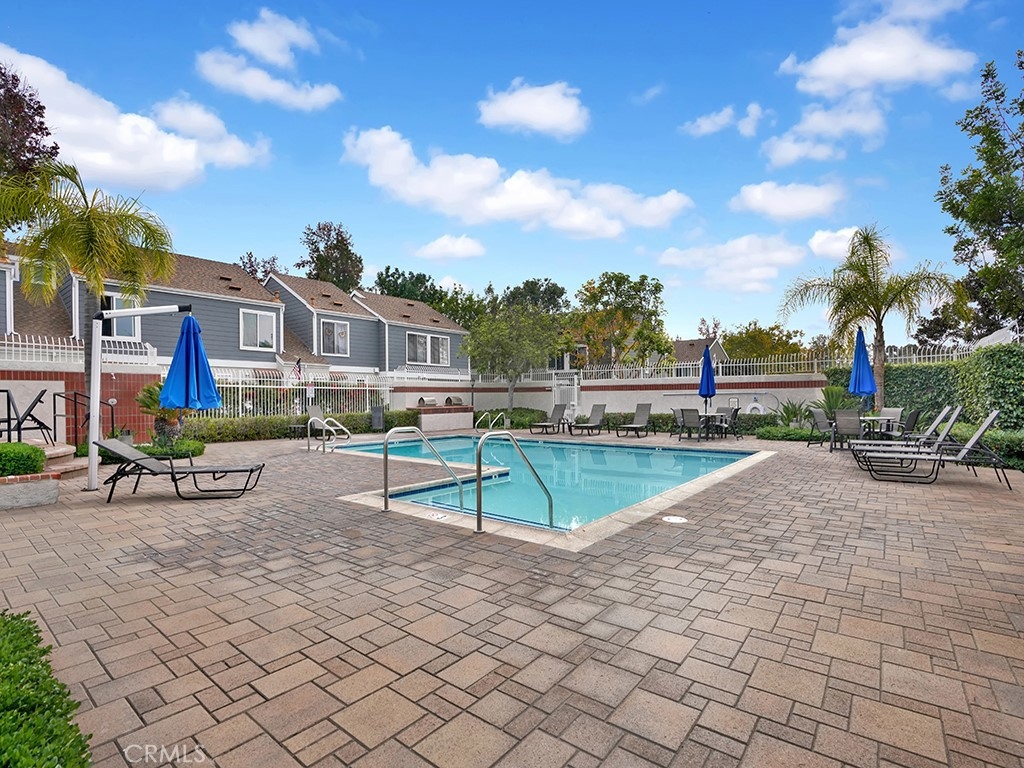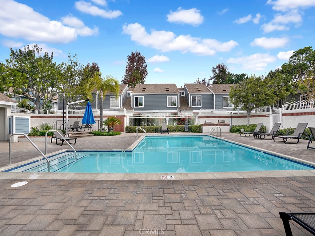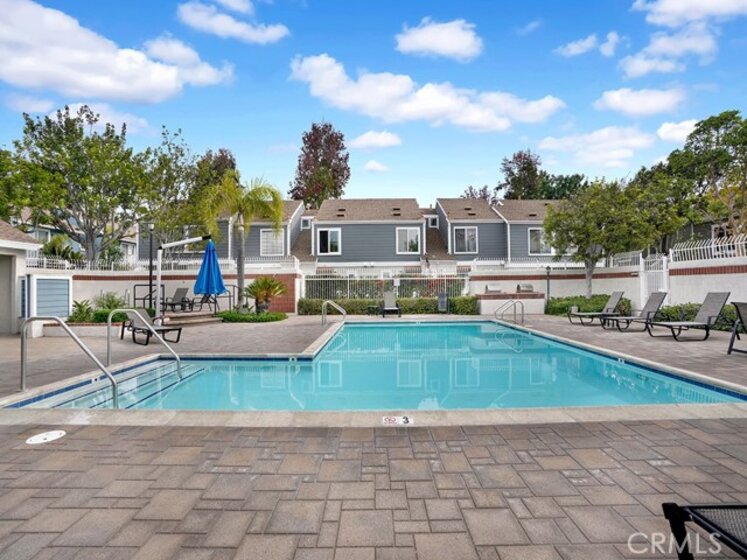 Darling two-bedroom condo in the great Morningside community of Aliso Viejo. Step out the front door into a park-like setting of grass and trees. Quiet patios lie just outside the front and back doors, and yet you feel like you are not looking at another building but at trees and grass. The kitchen has a lovely new countertop in a light material, and the main level flooring is a stylish and lovely soft, muted gray tile that is light and bright as well as durable. Two good-sized bedrooms are situated upstairs. There is a nice guest powder room under the stairway. A beautiful sparkling pool is just around the corner for swimming and relaxation. Award-winning schools, convenient location, this home has it all! Includes one covered carport space, with storage lockers, and one reserved parking spot.