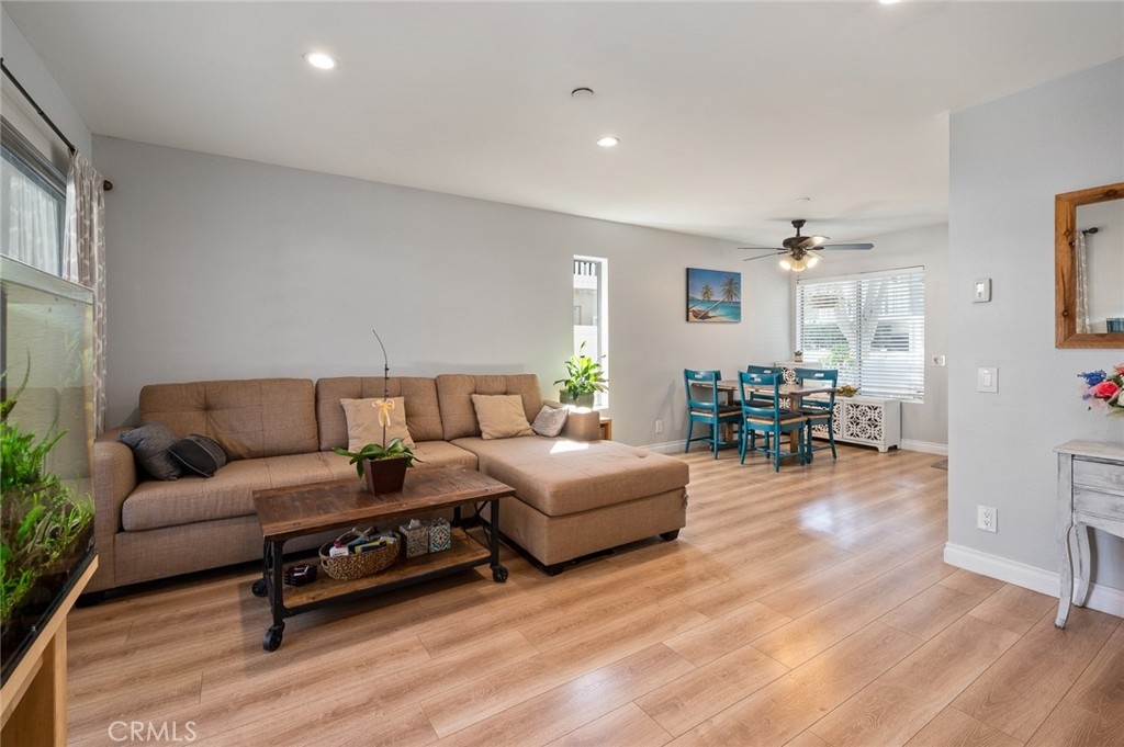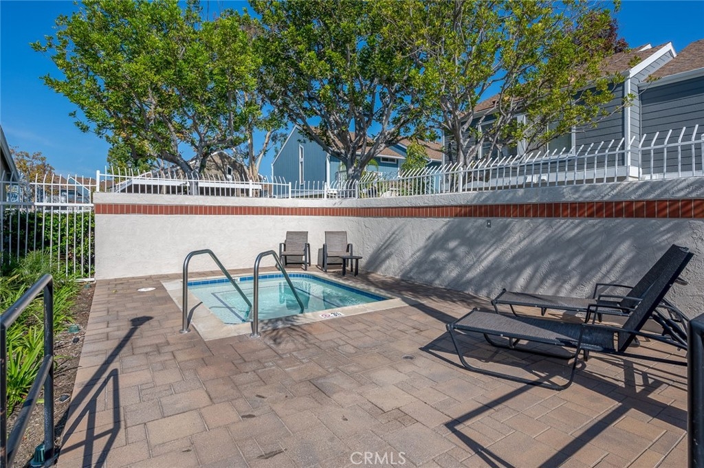 A corner-unit, sharing one wall, noone above or below, with lots of natural lights. 3 bedroom, 1.5 bath, two-story townhouse. 1st floor has light color laminate flooring, remodeled kitchen with recessed ceiling, butcher-block countertops, subway tile backsplash, stainless-steel stove. and white shaker cabinets. Kitchen closet has washer/dryer and pantry. Living room has a spacious layout, walk-in closet and sliding doors that lead to a private enclosed back patio that has outdoor storage closet with a newer water heater. The 2nd floor has light color carpet. Master bedroom has vaulted ceilings with a patio overlooking the courtyard. 1 carport with locable storage cabinet and 1 parking space included. Community has pool, hot tub and grill area and convenience location, close to stores, restaurants.