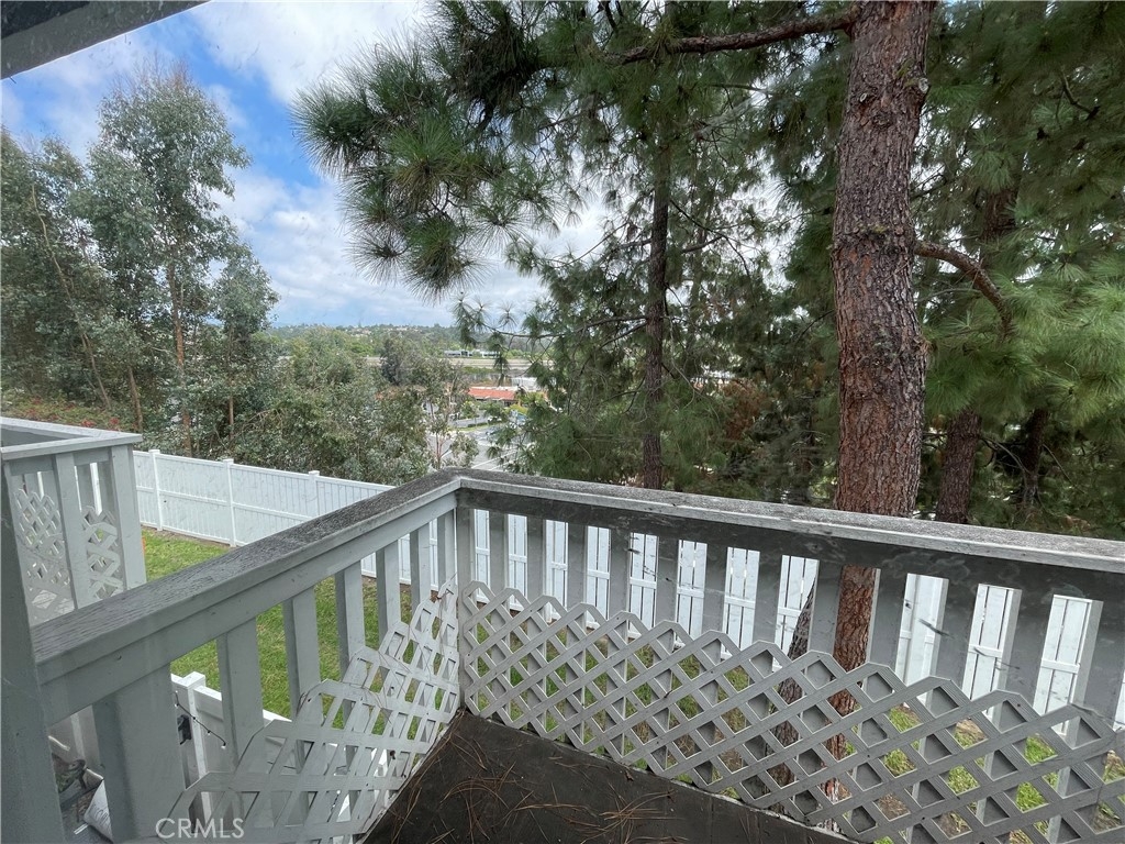 New price! Highly sought after Aliso Viejo townhome in the Morningside community. Newly renovated kitchen and living area. Gorgeous main floor tile. No one above or below. Private gated front and rear patios. Balcony deck with greenbelt views and mature pines behind. Two assigned parking spaces with carport storage. All appliances included. Easy proximity to trails, community amenities, shopping, and award- winning Capistrano Uniifed schools.