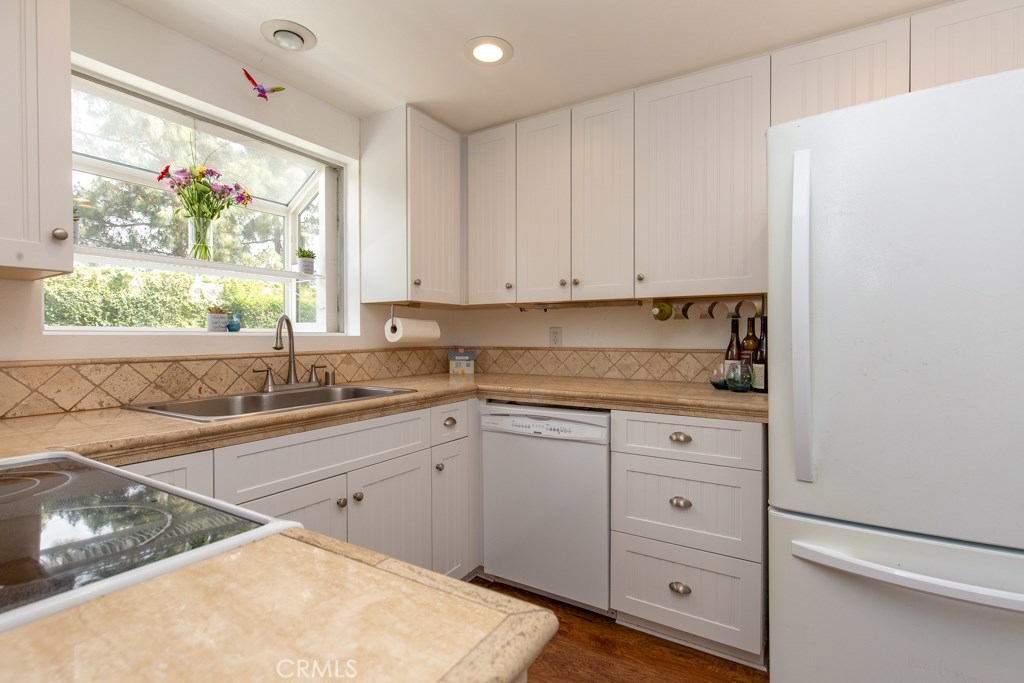 A MUST-SEE! Great value for a true gem in the sought-out community of Aliso Viejo! You’ll enjoy the open layout of this end-unit 3-bedroom, 1.5-bathroom home with no one above/below nor behind/front! Come and see this turnkey, re-piped, home that will WOW you with its quality upgrades throughout like the high-end laminate floors, double-pane windows and sliding doors for temperature-control and noise reduction, newer furnace, AC and water heater! You’ll enjoy the home’s bright and inviting feel; the dining room leads into the spacious living room that looks out to the private and upgraded patio. You’ll find additional upgrades in the bathrooms and fully renovated kitchen that boasts custom cabinets, travertine counters and soft-closing drawers............. This turnkey home is FHA-loan approved, is zoned for award-winning schools, has low HOA dues which include a pool, spa, BBQ area and community maintenance. Aliso Viejo hosts free public events throughout the year. It boasts miles of biking, hiking and walking trails and beautiful parks & recreational areas nearby. A short stroll to shopping, cinemas, eateries and more!