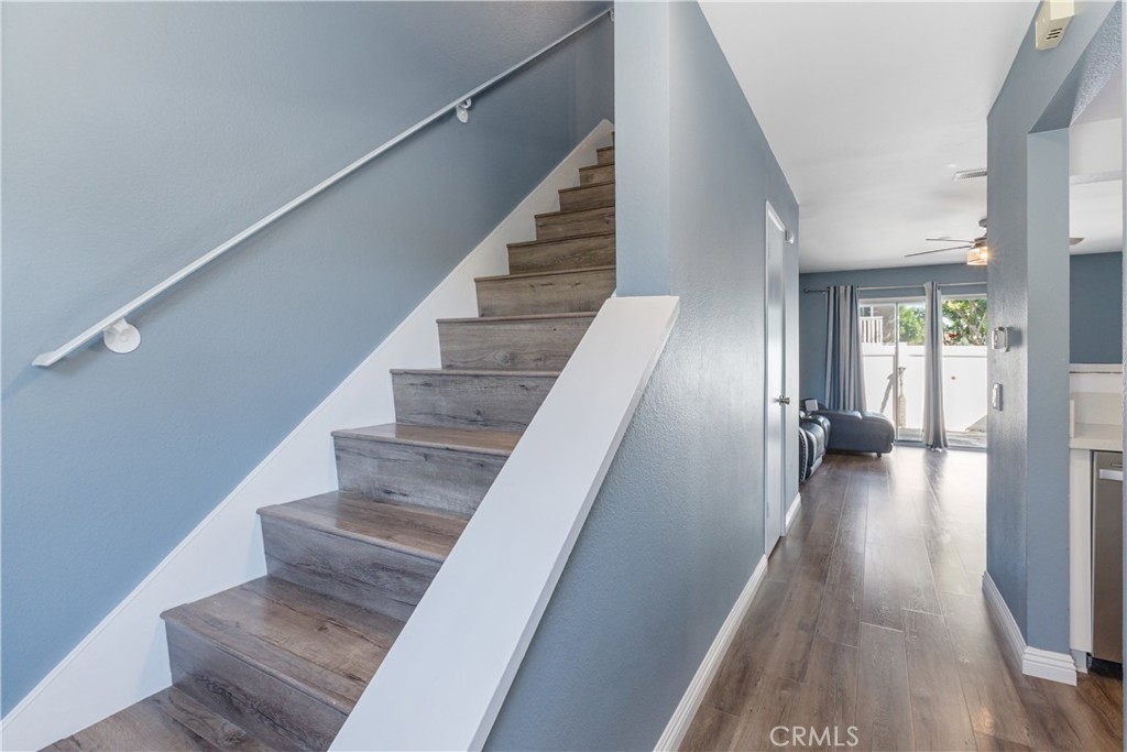This charming 2 Bedroom, 1 1/2 Bathroom Townhome is ready for you to move right in. A Modernized Kitchen and Bathrooms, this Home offers both Style and Comfort. Downstairs, you'll find a spacious and light-filled Living Room and an adjoining Dining Area with a Sliding Door leading to a Private Patio. The open kitchen provides ample Cabinet and Counter space and also has the Stackable Washer and Dryer. A convenient 1/2 Bathroom Completes the Layout. Upstairs has a Large Primary Bedroom with Vaulted Ceilings and both Bedrooms have Direct access to the Bathroom. A Spacious Secondary Bedroom completes the Upstairs. This Home is Conveniently Located to Shopping, Restaurants, Top-Rated Schools, and easy commuting options. There is Assigned Parking with a Covered Carport and a Dedicated Parking Spot included and Street Parking. Don't miss the opportunity to make this Beautiful Townhome Your Own! Please Note: 2 Parking Stalls 1 is uncovered & 1 is carport