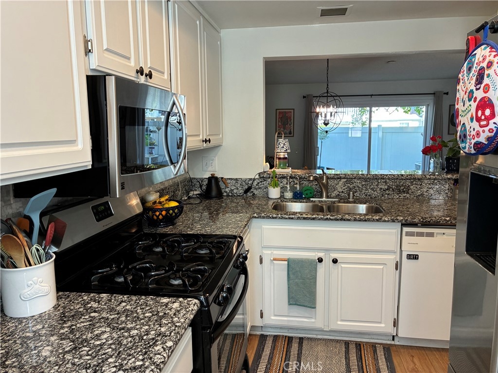 Huge price drop. Seller ready to see offers and willing to consider concessions for inside paint with strong offers. Don't let this one get away and get one of the best locations in the area. Location, location, location. Brand new flooring and updated windows. Welcome to this beautifully maintained home located in the desirable Morningside community, right in the heart of Aliso Viejo. Known for its master-planned design, abundant parks, and exceptional quality of life, Aliso Viejo offers the perfect blend of suburban comfort and coastal convenience. A private front courtyard creates an inviting entry and leads into a thoughtfully designed kitchen featuring granite countertops, quality cabinetry, and recessed lighting. The open dining and living areas offer a true great-room feel and are complemented by a convenient powder room. Recent upgrades include new flooring and new windows installed within the past two years, enhancing both the style and energy efficiency of the home. Sliding doors open to a private rear patio that backs to a tranquil greenbelt, providing the perfect balance of privacy and openness for entertaining or relaxing outdoors. Upstairs, the primary bedroom showcases vaulted ceilings, a spacious closet, and a private balcony overlooking the serene greenbelt. The secondary bedroom is generously sized with ample closet space, making it ideal for guests, family, or a home office. Residents enjoy access to a community pool, BBQ areas, and tennis courts, along with the added benefit of no Mello-Roos. Ideally located near shopping and dining, scenic hiking and biking trails, and just a short drive to Laguna Beach, Dana Point Harbor, and some of Orange County’s most beautiful beaches, this home offers an exceptional opportunity to enjoy both an active lifestyle and coastal living in one of Aliso Viejo’s most sought-after communities. A must-see opportunity. 2 assigned parking spaces #5 Covered and #5 Uncovered after closing.