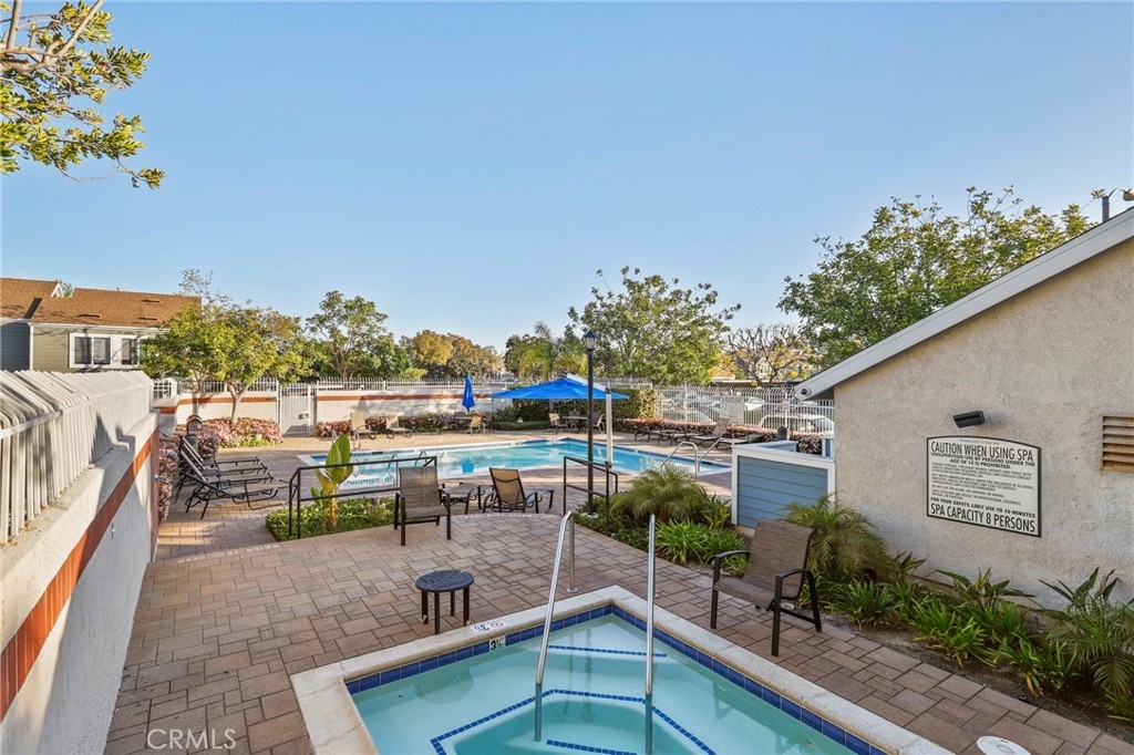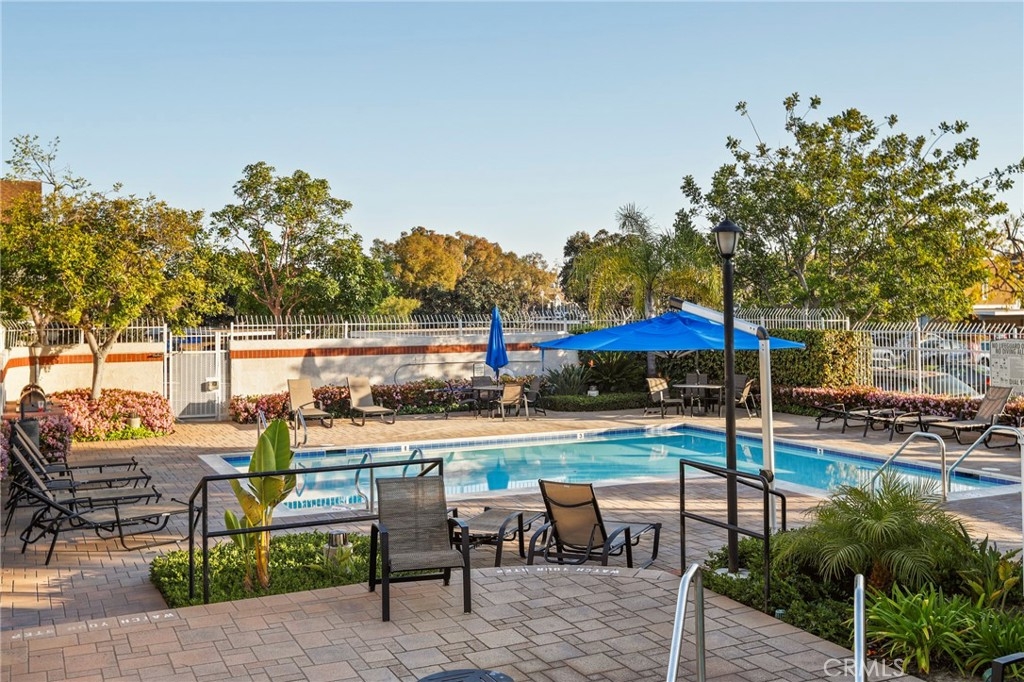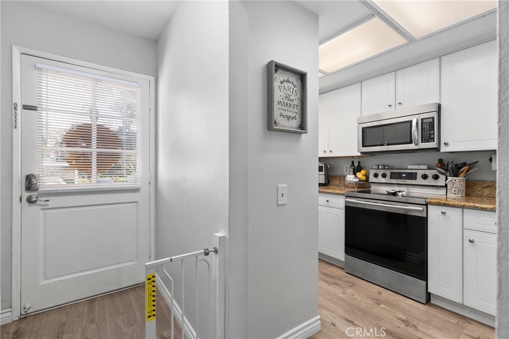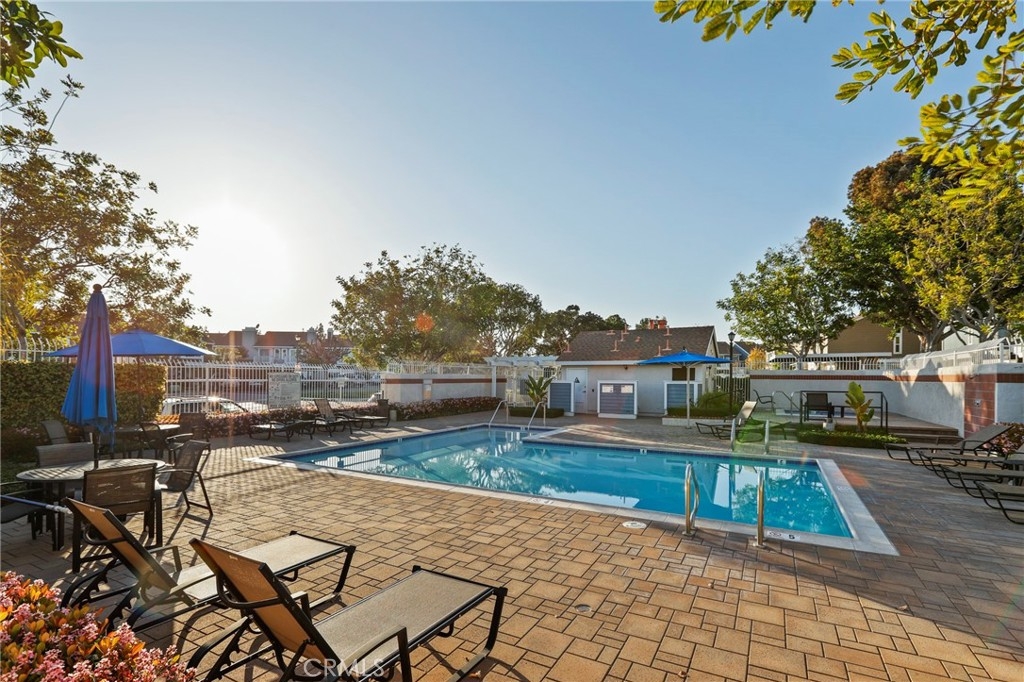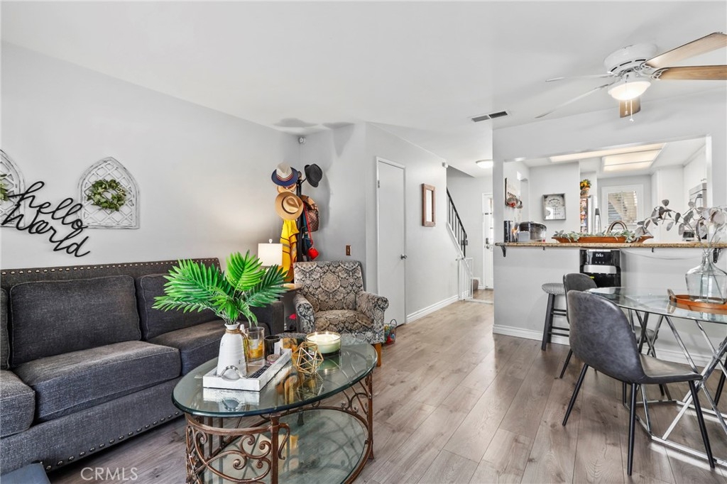 Discover the epitome of convenience and comfort at 89 Abbeywood Ln in Aliso Viejo's charming Morningside Townhomes. Nestled in a central locale, this residence boasts a welcoming front patio, complemented by sleek vinyl plank floors throughout. The modern kitchen features fresh white cabinets, granite counters, and stainless steel appliances, seamlessly flowing into the inviting living and dining areas. Upstairs, the primary bedroom beckons with its own balcony, while sharing a full bathroom with a secondary bedroom. Your convenience is ensured with an assigned parking spot and carport space. Dive into relaxation at the community pool and spa, or explore nearby attractions such as the Aliso Viejo Town Center, 73 Toll Road, scenic trails, and renowned schools.