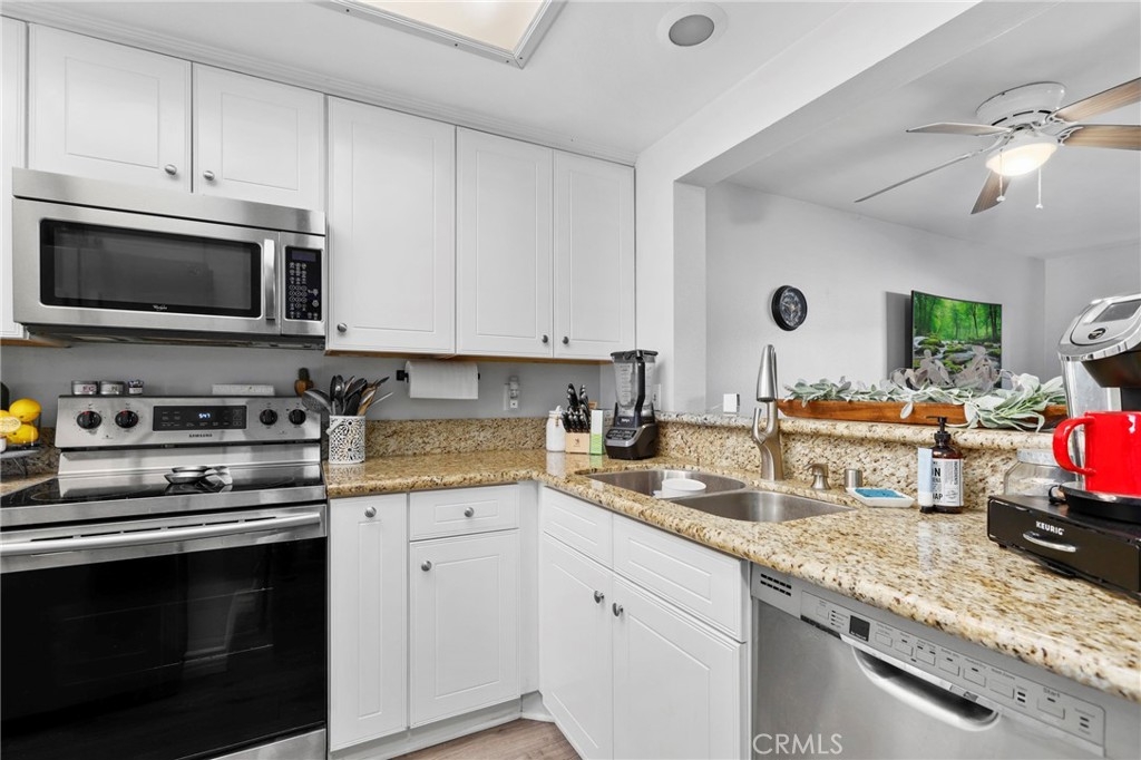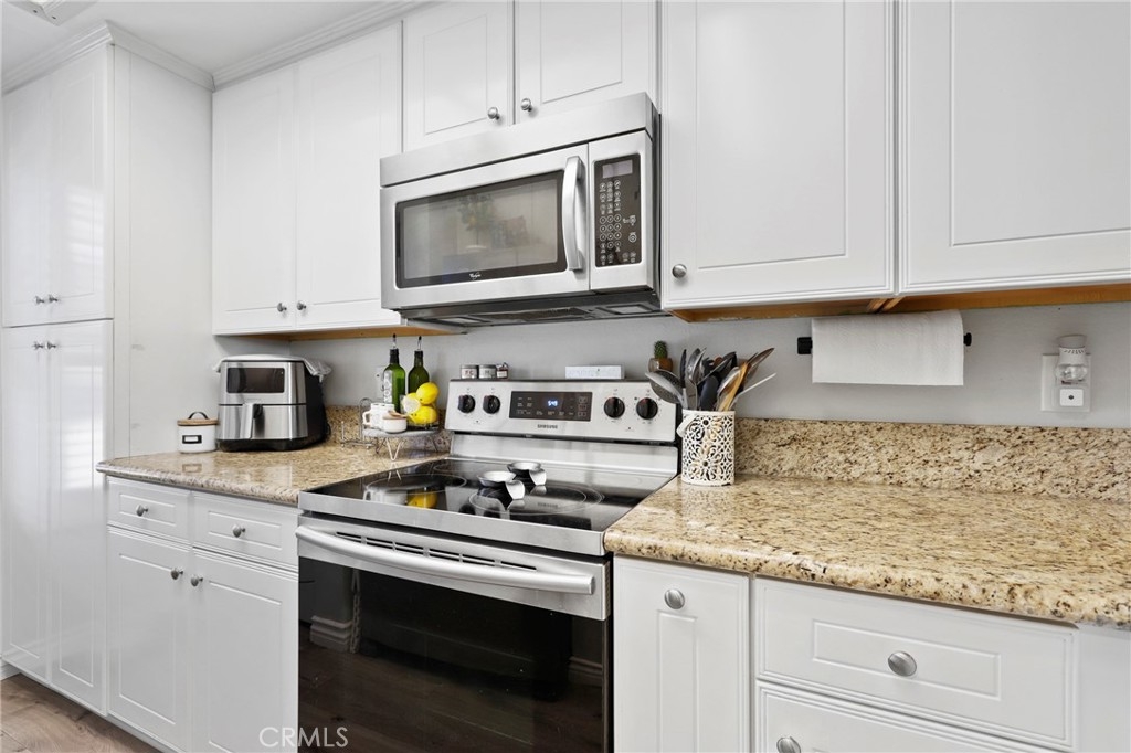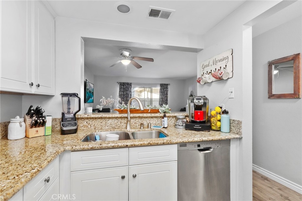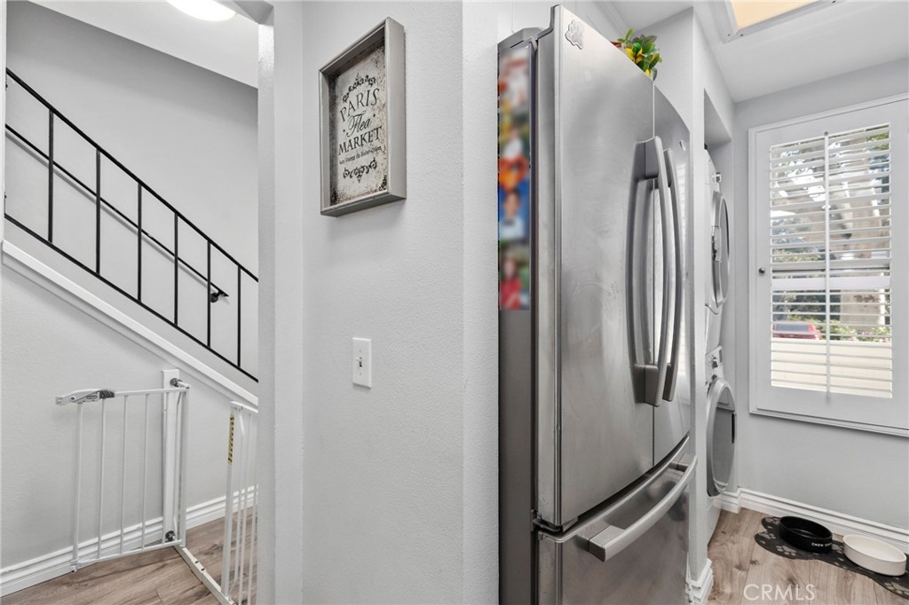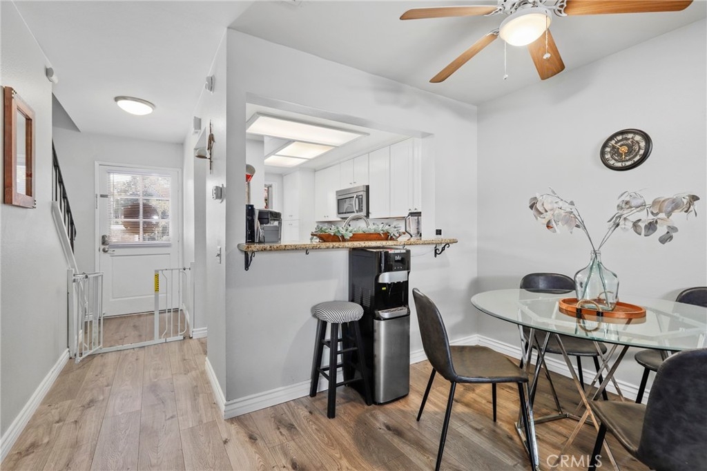 Discover the epitome of convenience and comfort at 89 Abbeywood Ln in Aliso Viejo's charming Morningside Townhomes. Nestled in a central locale, this residence boasts a welcoming front patio, complemented by sleek vinyl plank floors throughout. The modern kitchen features fresh white cabinets, granite counters, and stainless steel appliances, seamlessly flowing into the inviting living and dining areas. Upstairs, the primary bedroom beckons with its own balcony, while sharing a full bathroom with a secondary bedroom. Your convenience is ensured with an assigned parking spot and carport space. Dive into relaxation at the community pool and spa, or explore nearby attractions such as the Aliso Viejo Town Center, 73 Toll Road, scenic trails, and renowned schools.