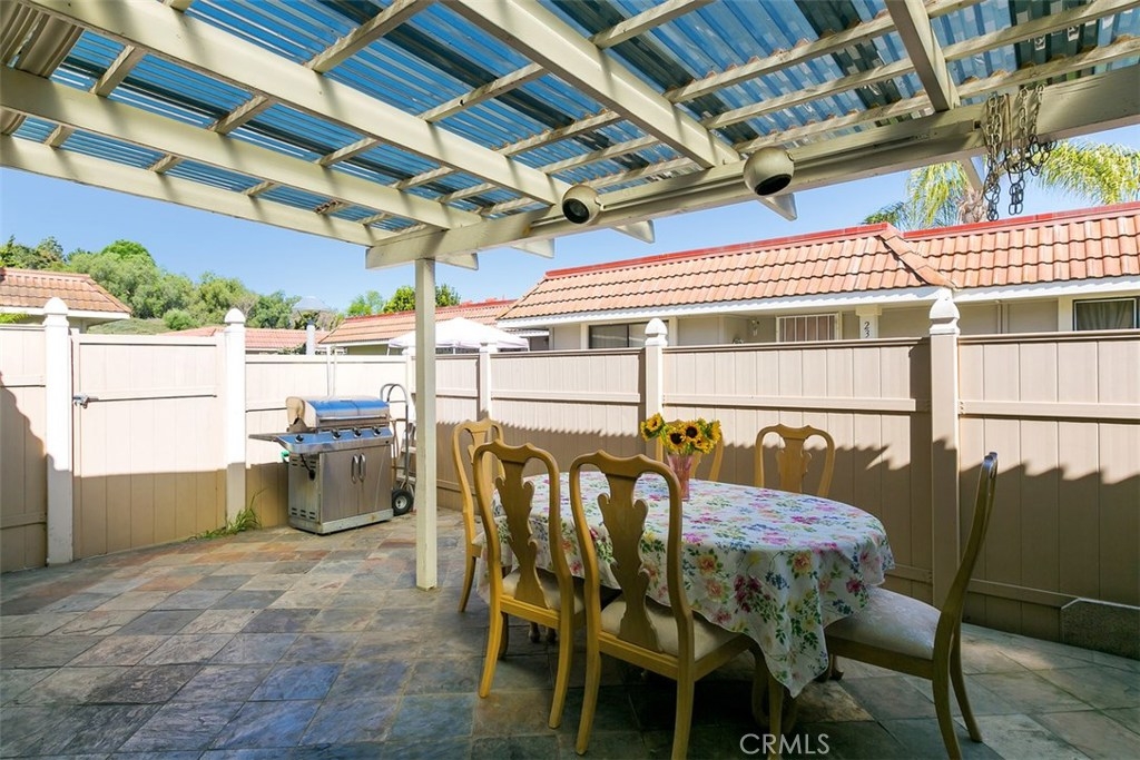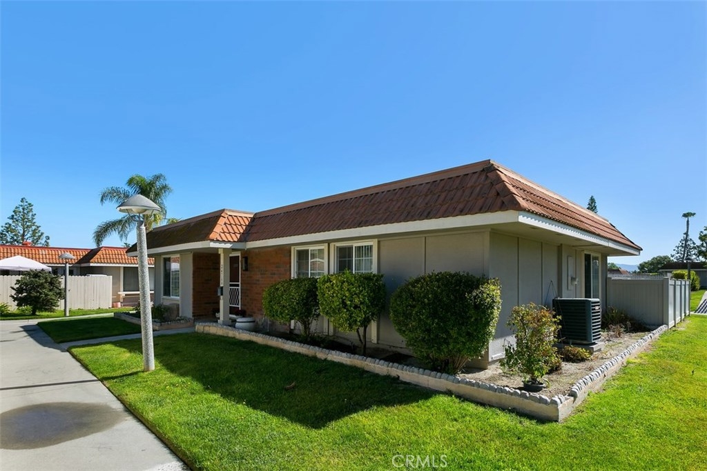 Opportunity Awaits the buyer of this Single Level home which shares just one common wall. Spacious open plan with Living area, with cohesive Living Room, Dining and Bright Kitchen. Tons of granite counter space. Sliders off kitchen to one of the largest vinyl-fenced enclosed patios in the community - perfect for outdoor entertaining with extra storage. Freshly painted and newly carpeted Bedrooms. Full size indoor Laundry area with additional storage. Central Air conditioning. Fabulous location within the community with many lush greenbelt areas and just a short distance to the Pool. Large detached Two Car Garage. Low Tax Rate and No Mello Roos. Community features Swimming Pool, BBQ area, tennis courts and play ground areas.