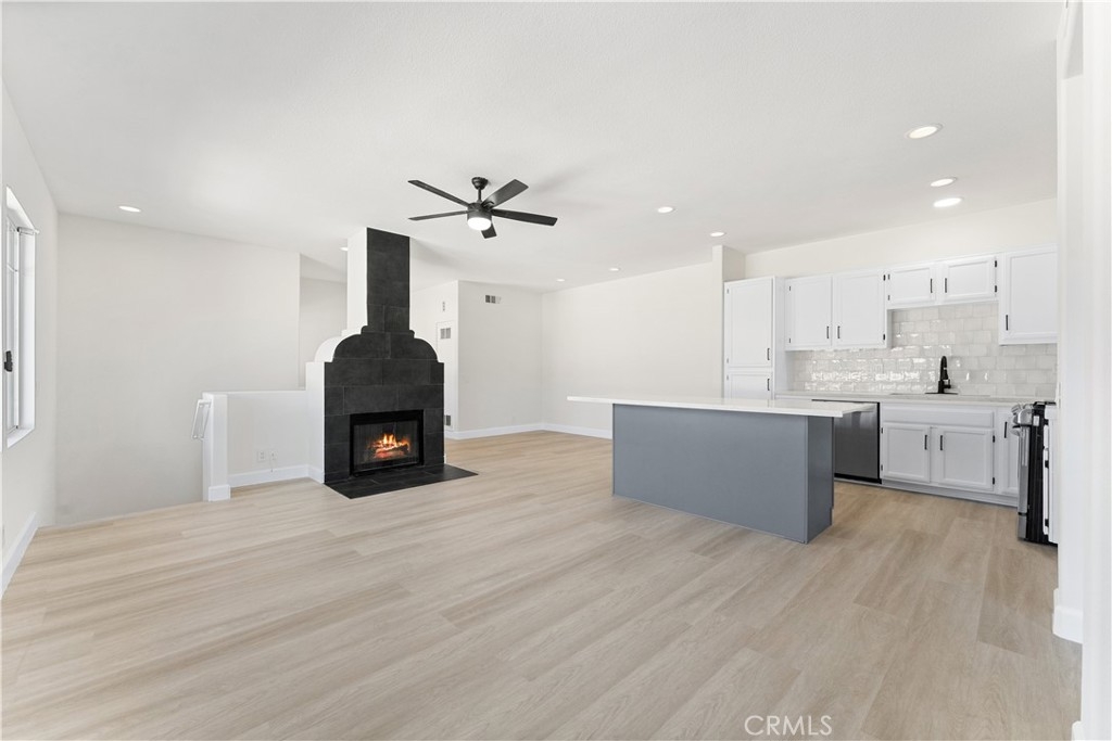 Step into this stunning, remodeled condo, where modern design meets everyday functionality. Located in a desirable gated community with access to a sparkling pool. Inside, you’ll find fresh paint throughout, brand-new hardware, and stylish new fixtures in every room. The kitchen is a showstopper, featuring an all-new island with soft-close drawers, plenty of bar seating, and a sleek backsplash that extends from the countertop to the upper cabinets. The modern sink includes a high-end faucet with digital temperature display, adding both convenience and a touch of luxury. Relax in the cozy living area, now centered around a completely revamped fireplace—retiled from floor to ceiling for a dramatic, updated look. Both bathrooms have been renovated with new tubs, elegant tile work, and updated fixtures. Additional highlights include new door handles throughout and a dual-control ceiling fan for ultimate comfort. The unit includes a two-car garage with direct access, and a washer and dryer conveniently located in the garage.