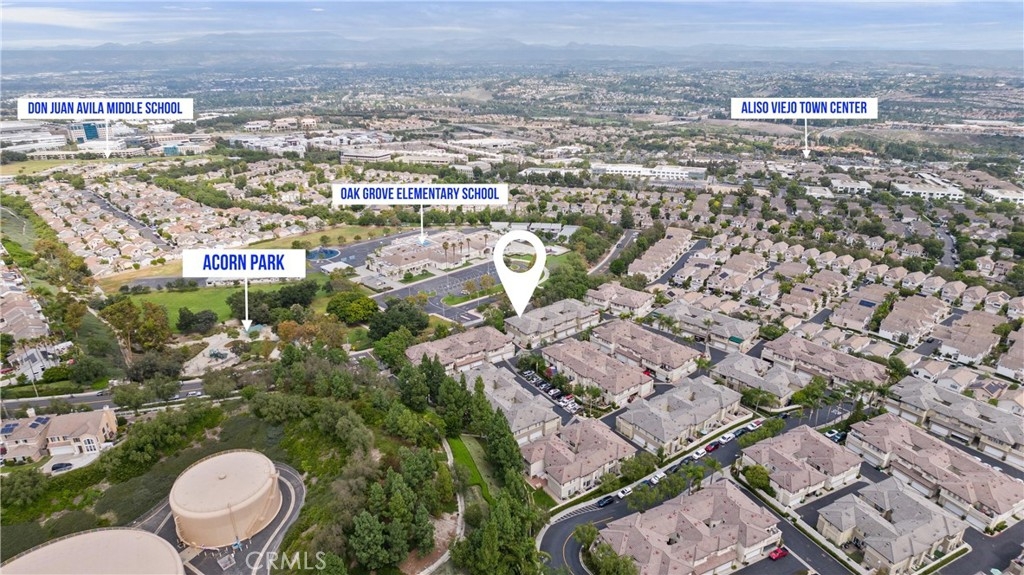 Welcome To 21 Aurora! Located in the highly desirable gated community of “Orleans” in Aliso Viejo. This beautiful 2 bedroom, 2 bath, 2 car garage condo is in a prime location and is an end unit that has no one above or below. This home features an open floor plan with lots of natural light and offers views of the surrounding hills and mountains by day and an expansive city lights view by night from the dinning room and adjacent balcony. The living room features builtin entertainment center and gas fireplace with electric starter. The kitchen is open to the living and dinning room areas and features stainless steal appliances and was just painted. The master bedroom is generous in size and has a large walk in closet with on suite bathroom. This home as had a recent refresh with all all new electrical switches, dimmers and outlets, new LED lighting, new ceiling fan in the master bedroom, new blinds in the bedrooms and living room, new faucets and shower fixtures in the bathrooms, new faucet and garbage disposal in the kitchen, new smoke detectors and landscaping in entryway. In 2017-2018 the HOA performed major improvements to home and had all new plumbing piped in, new exterior stucco and paint, balcony was redone, stuccoed and repainted and added new venal fencing. Asphalt was also redone throughout the community. The home owner has also done some major upgrades to make the home more energy efficient. In 2021 a whole house fan system was installed, new furnace and ducting in the attic space 2018, Radiant Barrier to reflect heat and extra insulation were added in the attic space in 2020. The A/C was replaced in 2013 and h20 heater in 2011. The 2 car garage with direct access to the home features smart home garage door opener 2018, plenty of storage above and below, laundry area and insulated roll up garage door. There is also plenty of guest parking available. This community also features a beautiful heated pool and spa with plenty of lounge chairs to soak up the sun. Close to the 73 freeway, many parks and schools as well as shopping.