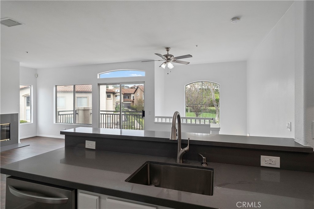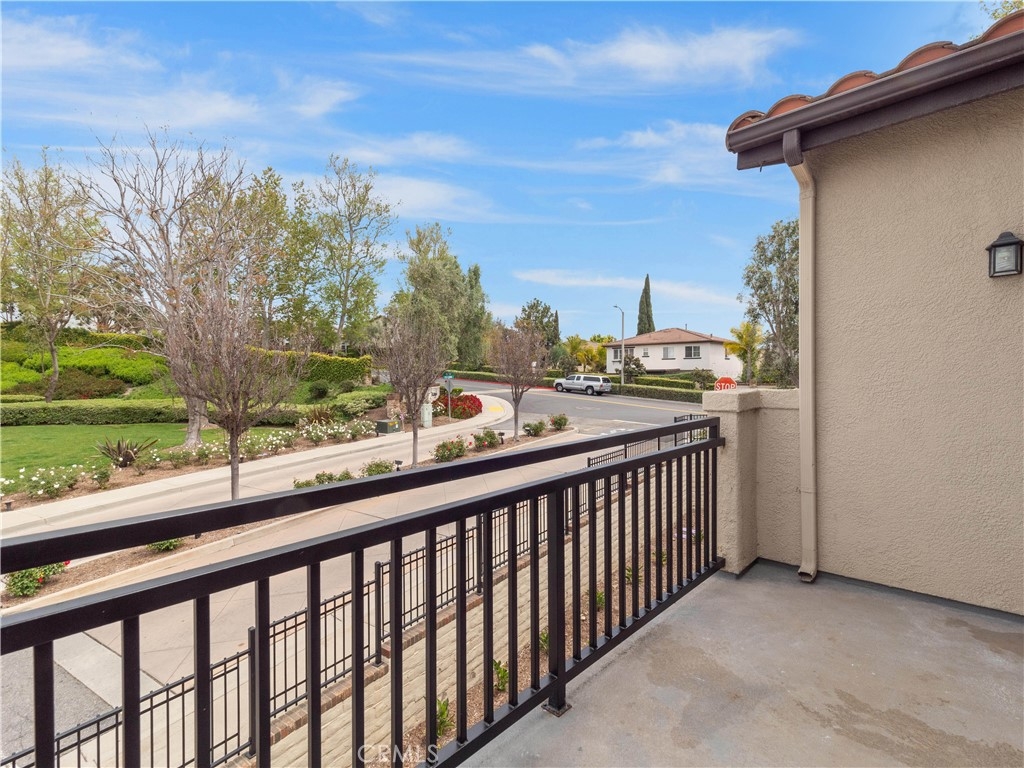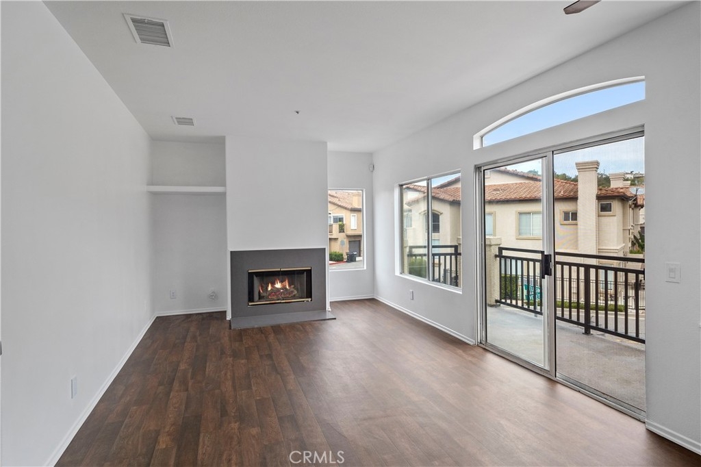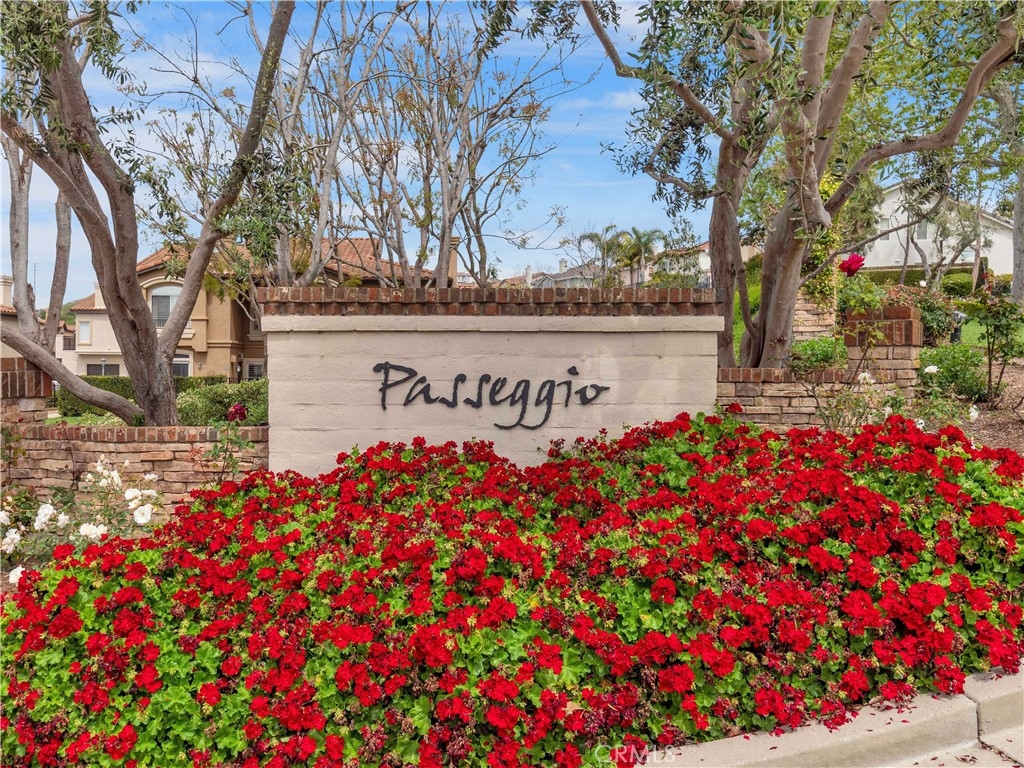 Beautiful 2 bedroom 2 bath, UPPER End Unit Condo in the quiet Passegio Community. This home is minutes to the 133 and 73 and freeway, Westridge park, Town Center and Soka University. STAIRS take you to the UPPER one level living space. This is the home you've been looking for. Beautiful newer painted walls compliment the gorgeous Luxury Vinyl Floors. Fireplace in living room. There is so much natural lighting - you'll love it. The main bedroom bath has dual sinks. Full, hall bath is across from the second bedroom and convenient for guests as well. This quiet corner unit has views of the Aliso Canyon hills from your patio oasis. One car attached garage and Additional, designated parking space as well.
