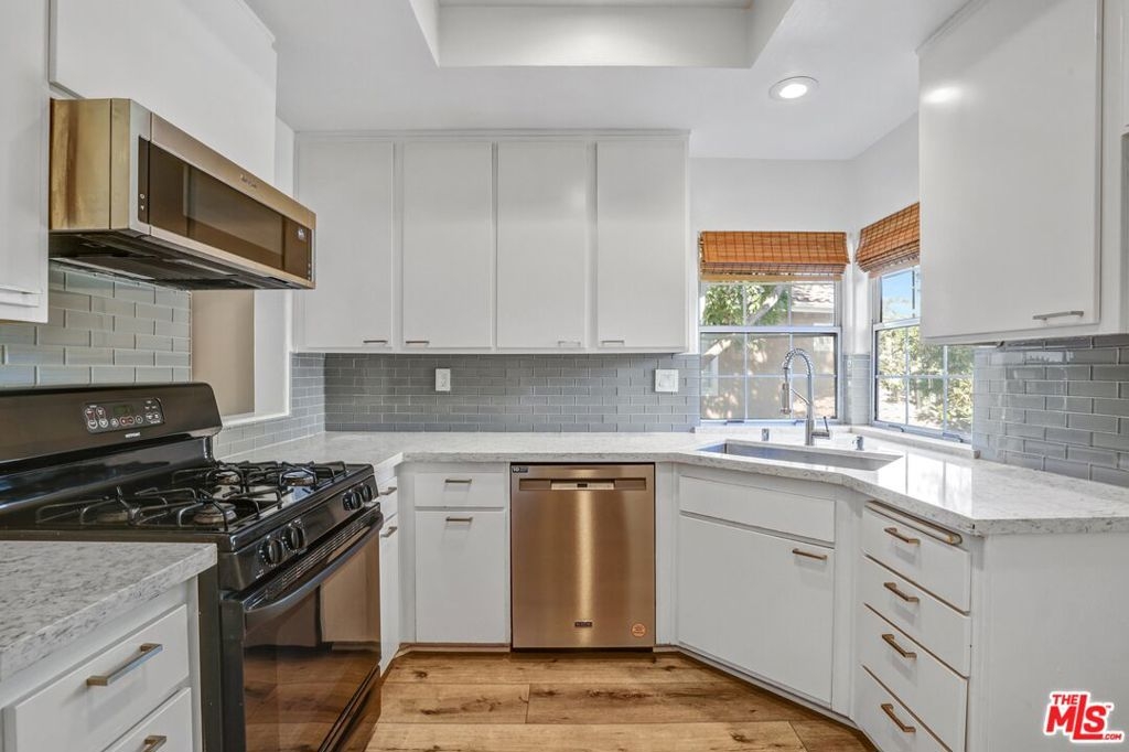 Get ready to be impressed with this gorgeous 2 bedroom 2 bath condo located in the exclusive gated community of Provence d' Aliso. As you enter the home you'll notice the dramatic vaulted ceilings and oversized windows allowing plenty of natural light. Enjoy preparing meals in the kitchen complete with quartz countertops, custom backsplash and farm style stainless steel sink. The living area has a beautiful fireplace and access to the oversized balcony where you can grill, entertain, or simply enjoy the view. Both bedrooms have vaulted ceilings and en-suites. Parking should never be an issue with your 1 car garage, driveway and additional assigned parking space . This HOA includes two swimming pools, a spa, exercise room, basketball courts, tennis courts, clubhouse, walking trails and plenty of visitor parking. Located in an ideal location near award winning schools, plenty of restaurants, shopping and just a short drive to the beach. Also we have a 4.75% Assumable VA loan!!!