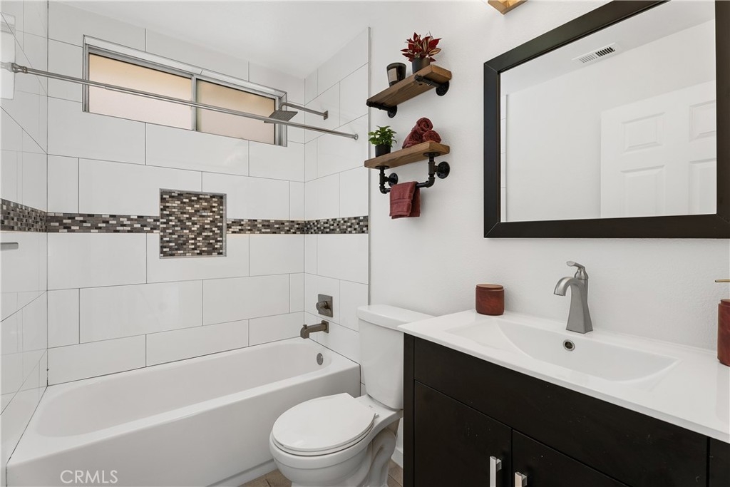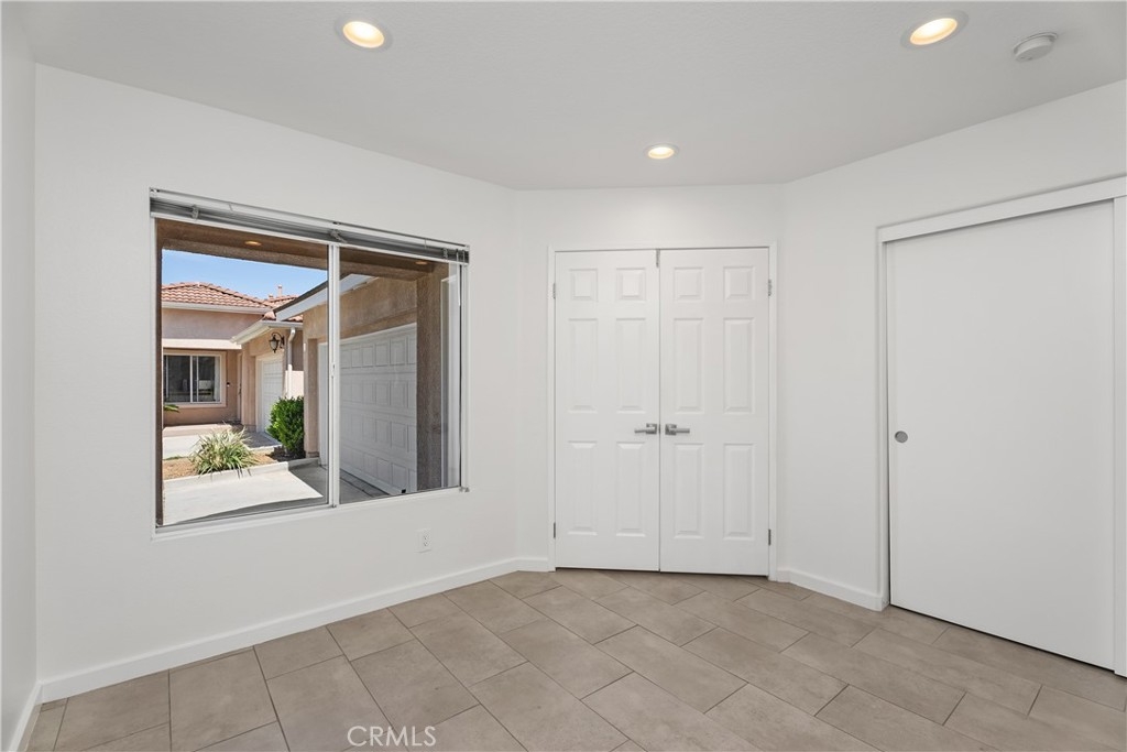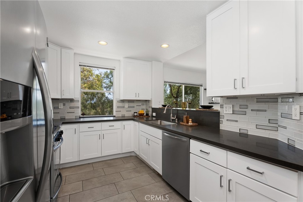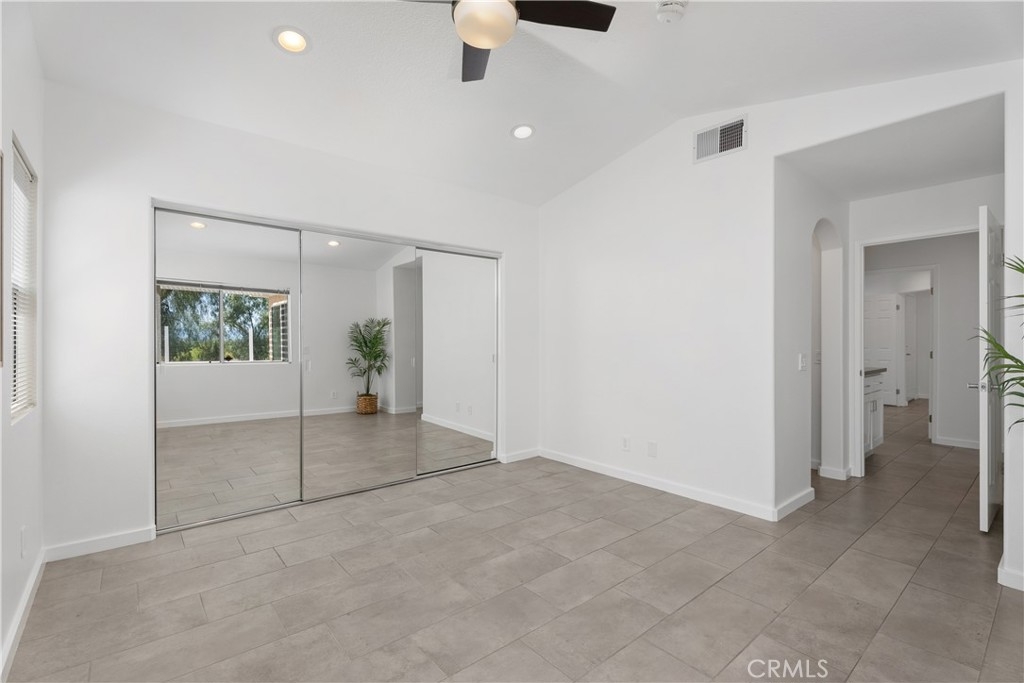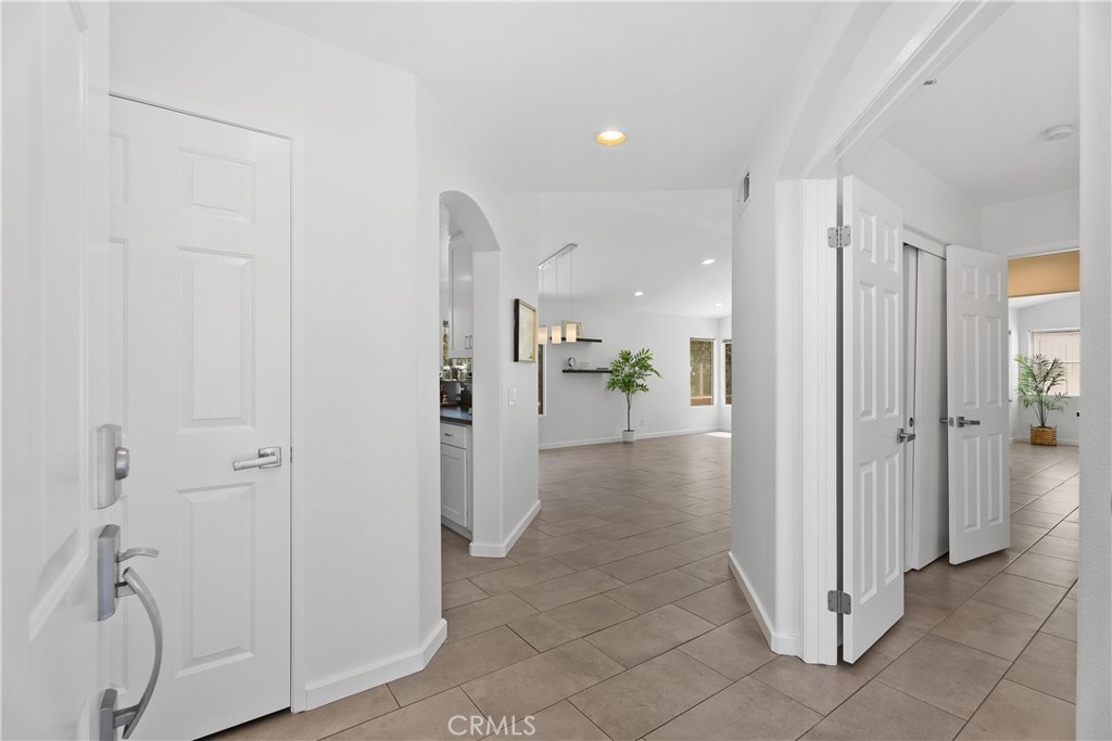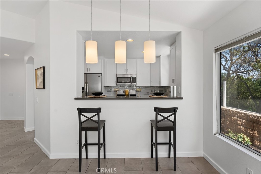 HIGHLY UPGRADED SINGLE-LEVEL DETACHED HOME WITH SCENIC VIEWS IN THE PRESTIGIOUS GATED COMMUNITY OF SAN SIMEON. Located at the end of a quiet cul-de-sac, this detached home boasts an open floor plan filled with natural light and offers scenic views of trees, city lights, and mountains. The remodeled kitchen features soft-close cabinets with a spice drawer and lazy Susans, quartz countertops, a glass mosaic tile backsplash, and stainless steel appliances. The spacious great room showcases a high ceiling, a cozy fireplace, and a sliding glass door leading to the private patio. The primary bedroom features high ceilings, scenic views, a spacious mirrored closet, and a ceiling fan. Upgraded bathrooms add a touch of luxury, while the hallway offers additional storage with a cabinet and quartz countertop. Recessed lighting and tile flooring extend throughout the home, complemented by fresh paint. The garage includes epoxy flooring and overhead storage racks. Step outside to a private backyard with a covered patio and a sleek glass fence. Enjoy very low HOA dues, no Mello-Roos, and low taxes. Ideally located near award-winning schools, parks, an aquatic center, a Jack Nicklaus-designed golf course, shopping, dining, movie theaters, hiking and biking trails, and major freeways.
