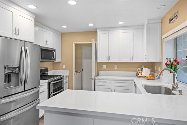 Welcome to Seacove Place, a beautifully updated 3-bedroom, 3 full bathroom residence that offers comfort, style, and convenience in one of the most desirable areas of the community. This first-time-on-the-market property features a light-filled downstairs with an open-concept kitchen that boasts white shaker cabinetry, quartz countertops, soft-close drawers, built-in recycling and trash drawer, and a 5-burner stove. The kitchen seamlessly flows into the spacious family room, creating an ideal space for entertaining. A downstairs bedroom and full bath provide ample space and flexibility for guests or a home office. Upstairs, you’ll find two additional bedrooms and two full bathrooms, including a primary suite with soaring ceilings, ample closet space, and peaceful views of the greenbelt. Indoor-outdoor living is a breeze with a private enclosed patio that opens to a lush greenbelt away from busy streets. This perfect spot is ideal for relaxing or entertaining. Throughout the home, modern upgrades include recessed lighting, laminate wood flooring, and re-piping for peace of mind, an attached garage, an additional parking space (#109), and plenty of guest parking which was an upgrade option when the home was built. The community is beautifully landscaped and offers resort-style amenities, including a pool, spa, and HOA coverage for water and trash. With close proximity to shopping, dining, coffee shops, and just minutes from Laguna Beach. Along with easy access to the toll road, and freeways, this home seamlessly blends modern living with an unbeatable location.