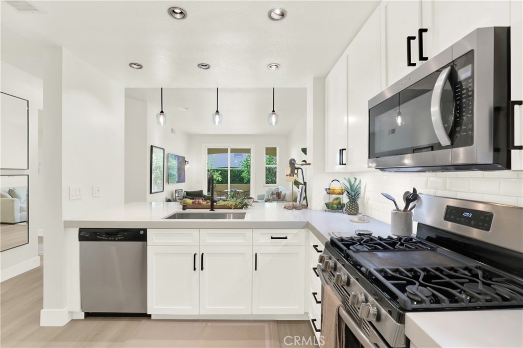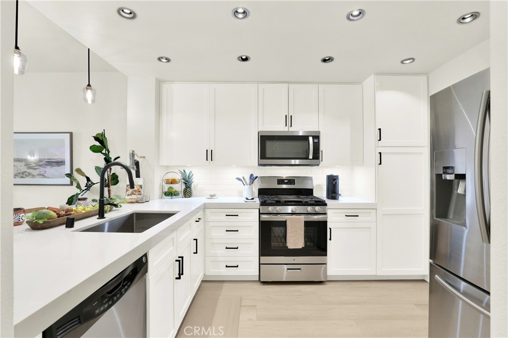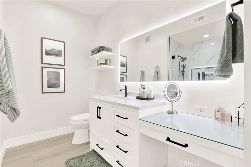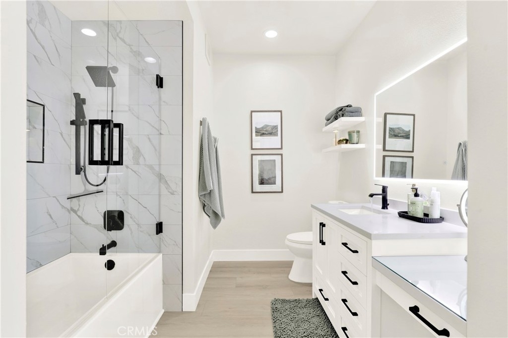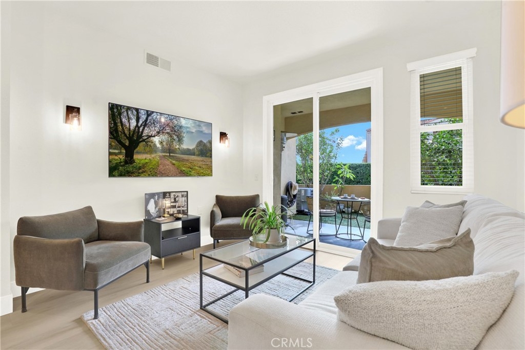 UPGRADED Turnkey Single-Level Condo in Aliso Viejo. Welcome to a beautifully updated two-bedroom, two-bathroom home in the tranquil Seacrest Villas community, situated above the AV Country Club with panoramic Saddleback Mountain views. Recognized as the 2nd safest city in California, Aliso Viejo offers peace of mind along with a coastal suburban environment. This prime location home showcases a modern design with upgrades throughout including luxury vinyl flooring, shaker-style bedroom and bathroom doors, updated cabinetry, quartz countertops, and custom marble tile showers with sleek glass enclosures. Additional highlights include central a/c, indoor laundry, direct-access garage with ample storage, additional assigned parking spot and a partially secluded patio with fruit trees—perfect for gardening, relaxing, entertaining or morning yoga. Seacrest Villas residents enjoy a resort-style pool and spa along with the reassurance of the entire community PEX re-piped completed in 2023 for added value. Ideally located near dining, shopping/TJ Maxx/Trader Joes, Capistrano Unified School District, hiking and biking trails, impeccably landscaped parks, world-class beaches, Soka University and Performing Arts Center and convenient freeway and toll road access. This home offers an ideal blend of comfort, convenience, and the South Orange County lifestyle.