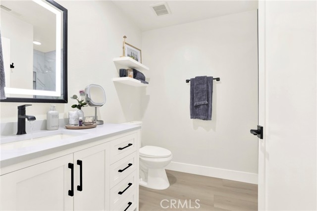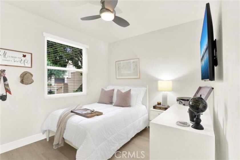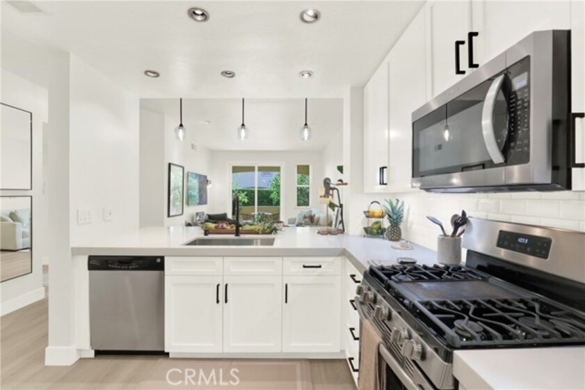 UPGRADED Turnkey Single-Level Condo in Aliso Viejo. Welcome to a beautifully updated two-bedroom, two-bathroom home in the tranquil Seacrest Villas community, situated above the AV Country Club with panoramic Saddleback Mountain views. Recognized as the 2nd safest city in California, Aliso Viejo offers peace of mind along with a coastal suburban environment. This prime location home showcases a modern design with upgrades throughout including luxury vinyl flooring, shaker-style bedroom and bathroom doors, updated cabinetry, quartz countertops, and custom marble tile showers with sleek glass enclosures. Additional highlights include central a/c, indoor laundry, direct-access garage with ample storage, additional assigned parking spot and a partially secluded patio with fruit trees—perfect for gardening, relaxing, entertaining or morning yoga. Seacrest Villas residents enjoy a resort-style pool and spa along with the reassurance of the entire community PEX re-piped completed in 2023 for added value. Ideally located near dining, shopping/TJ Maxx/Trader Joes, Capistrano Unified School District, hiking and biking trails, impeccably landscaped parks, world-class beaches, Soka University and Performing Arts Center and convenient freeway and toll road access. This home offers an ideal blend of comfort, convenience, and the South Orange County lifestyle.
