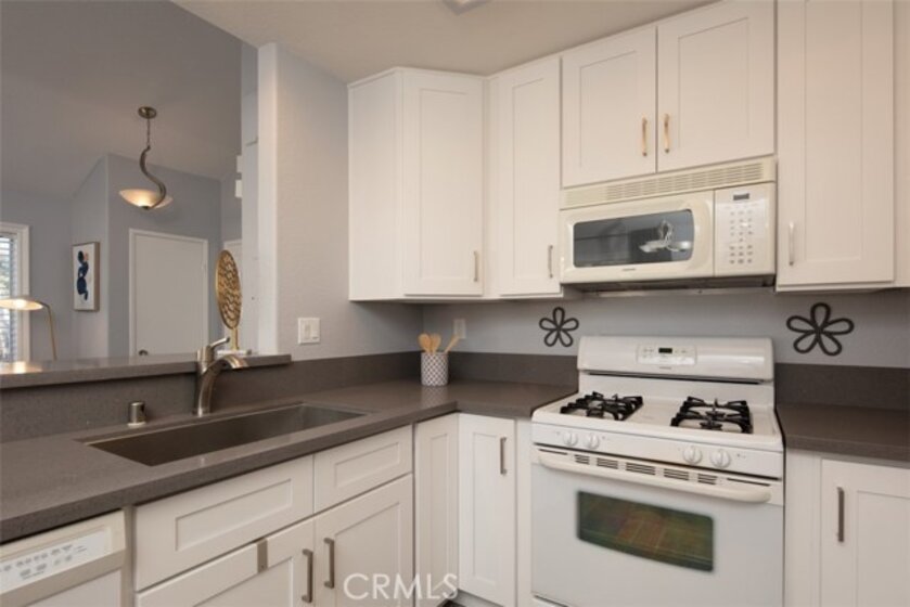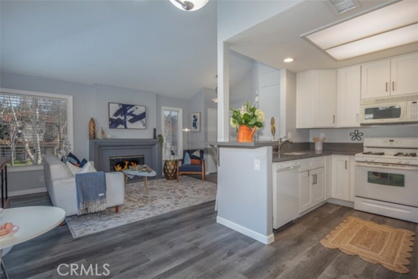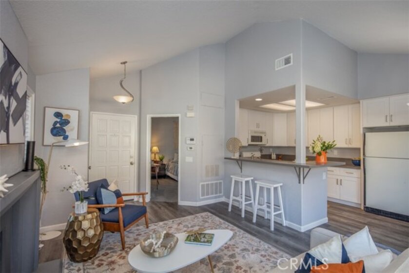 Resort-like living in this light and bright upper corner end-unit condo. Be greeted with the flood of natural light and vaulted ceilings in this thoughtfully designed space. Remodeled kitchen with white cabinets, granite countertops, and a breakfast bar that overlooks the living room with vaulted ceilings, windows on every wall, and a gas fireplace. The designated dining space, located directly off the kitchen, overlooks the sunny patio with your own private garden, alfresco dining space, and lounge area, allowing you to enjoy the indoor-outdoor lifestyle. Thoughtfully designed dual master bedrooms, situated on opposite ends of the house, provide the ultimate privacy and separation. Both bedrooms are spacious, featuring vaulted ceilings, newer carpet, large windows, and ceiling fans. Both bathrooms have double sinks, additional large closets, a tub/shower combination with glass doors, and a cedar-lined closet in the main master bedroom and larger garden tub. Bathroom doors were added for privacy in both bedrooms. This unit also offers indoor laundry facilities, brand-new heating and air conditioning, a new hot water heater and has been fully re-piped. The decks were recently sealed and painted. One car detached garage and one assigned parking spot #87 is included. The community features two resort-style pools with hot tubs, outdoor barbecues, a clubhouse, and a gym. A serene greenbelt with walking and biking trails is conveniently located just outside your door, conveniently located within 5 miles of the beach, minutes from the toll road and freeways, and surrounded by shopping and dining options. The Homeowners Association (HOA) also covers water, trash, ground maintenance, exterior insurance, the roof, pipes exteriors and garage power. The property is scheduled for repainting soon, and the owner has already paid the assessment for the painting. Live the Laguna Beach lifestyle as this coveted complex is considered part of Laguna Beach school district. You are able to get the shoppers permit and park at the metered parking for free. The school bus picks up in front of the complex. Low tax basis, no mello roos this community remains one of the most affordable for the Laguna Beach school district.