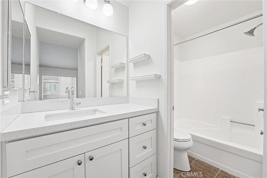 COZY, COMFORTABLE and AFFORDABLE. Location is everything, and this beautifully remodeled upper-level corner condo in the desirable Seagate Colony of Aliso Viejo offers comfort, privacy, and convenience. With no neighbors above or below, the light-filled home features high ceilings, recessed lighting, neutral tones, and slate flooring throughout. Open living and dining areas create an easy flow for everyday living and entertaining. The updated kitchen includes white shaker cabinets, quartz countertops, and stainless-steel appliances. The bedroom offers vaulted ceilings and mirrored closets, while the remodeled bathroom features updated cabinetry and a rare tub-and-shower combination. A private patio with washer and dryer extends the living space outdoors. Additional highlights include a detached one-car garage, newer HVAC system, Nest thermostat, paid HOA assessment, and full community exterior painting and interior re-pipe. Residents enjoy pools, spas, fitness center, and clubhouse, all near shopping, dining, freeways, and Laguna Beach. Move-in ready coastal living awaits.