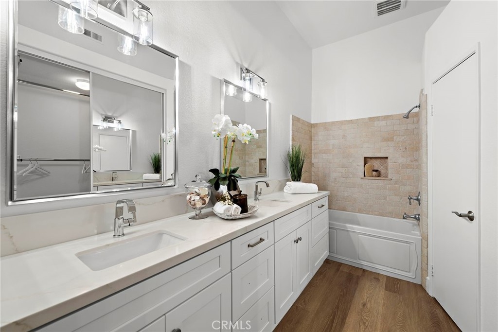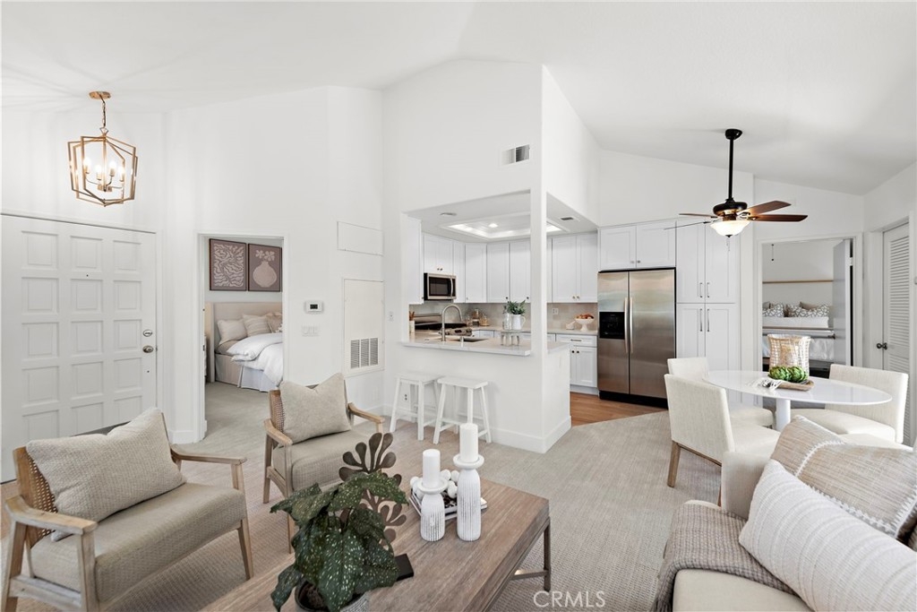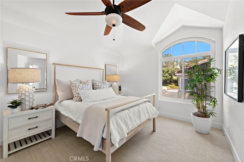 Seagate colony in the Laguna Audubon community is ideally situated near Laguna Beach and enjoys the benefits of being part of an award-winning school district. This second-level corner end unit offers a spacious open floor plan with vaulted ceilings, a cozy fireplace in the living room, and a large outdoor patio. The kitchen is equipped with quartz countertops, stainless steel appliances, and a separate laundry room. Two primary ensuites with walk-in closets and luxurious bathrooms provide comfort and privacy. Notably, this unit owns two oversized garages with storage, one with dual access. HOA covers water, trash, and garage electricity. Residents can enjoy resort-style amenities including pools, spas, a gym, and clubhouse, with easy access to toll roads, freeways, beaches, shopping, and dining. This model perfect, move-in-ready home presents an incredible opportunity for a vibrant coastal lifestyle.