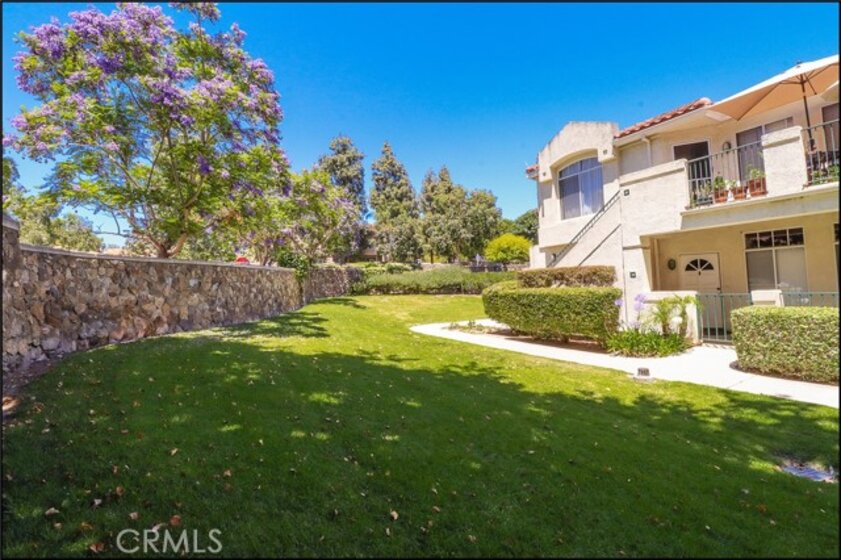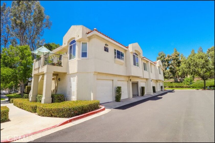 AWESOME CARRIAGE STYLE, END UNIT LOCATION WITH NO ONE ABOVE OR BELOW, OFFERING AN OPEN FLOOR PLAN WITH HIGH CEILINGS, LIVING ROOM WITH FIREPLACE, SPACIOUS KITCHEN AND UPGRADED DUAL GLAZED WINDOWS! This amazing end unit property offers tall vaulted ceilings in the living room with fireplace and recessed entertainment niche, large dining area with large windows to bring in plenty of natural light, master suite with high ceilings, large walk-in closet and master bathroom with skylight, large tub and vanity with dual sinks. Second bedroom with closet organizers and full second bathroom with upgraded fixtures. Full size inside laundry with washer and dryer included. All this plus resort style pool, spa and clubhouse, Laguna Beach School District, easy toll road (73) and beach access (via 133) and nearby hiking, biking and nature trails!