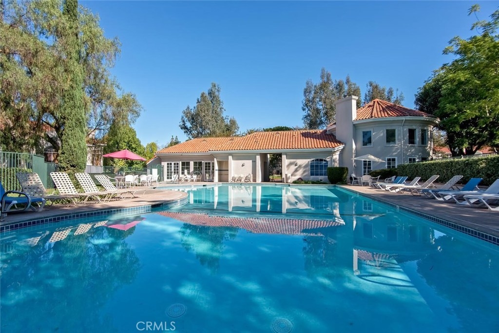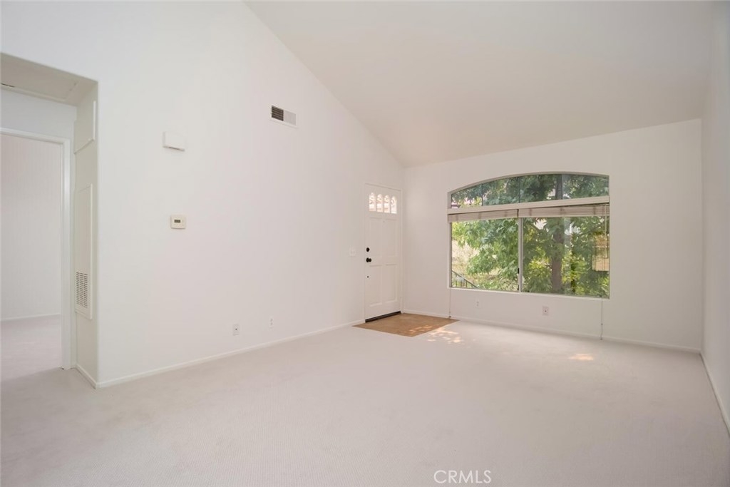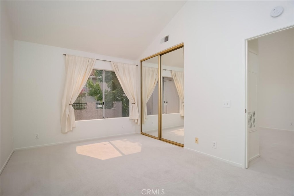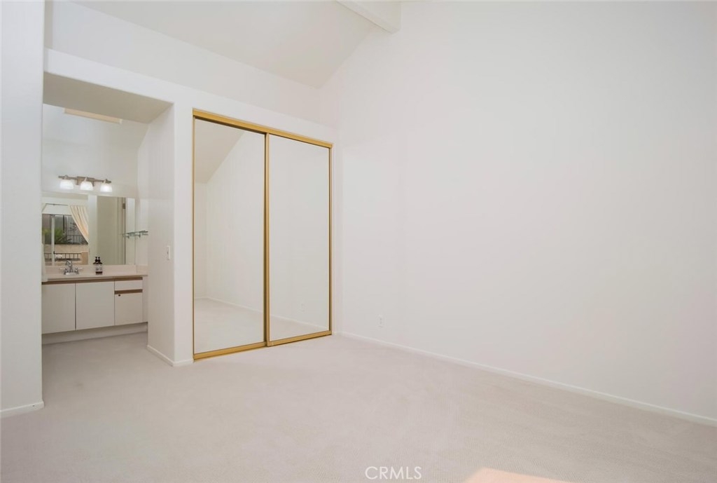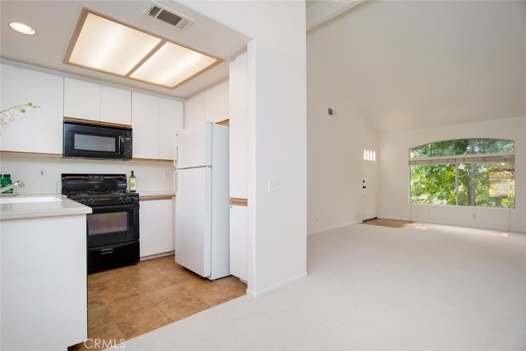 Welcome Home to Aliso Viejo, just minutes away from Laguna Beach and close to shopping with convenient toll road and freeway access. Single story living features a generous living room with a soaring cathedral ceiling and abundant natural light. Spacious dining area with chandlier adjacent to the cheerful kitchen. Large bedroom features a vaulted ceiling, dual closets with mirrored wardrobes and convenient bathroom. Large deck/BBQ balcony on entry. Private laundry closet off deck includes side by side washer and dryer and water heater. Private, detached 1 car garage with room for storage, included. Lovely Community Views and close proximity to one of 2 community pools. Enjoy the community gym and the beautiful neighborhood.