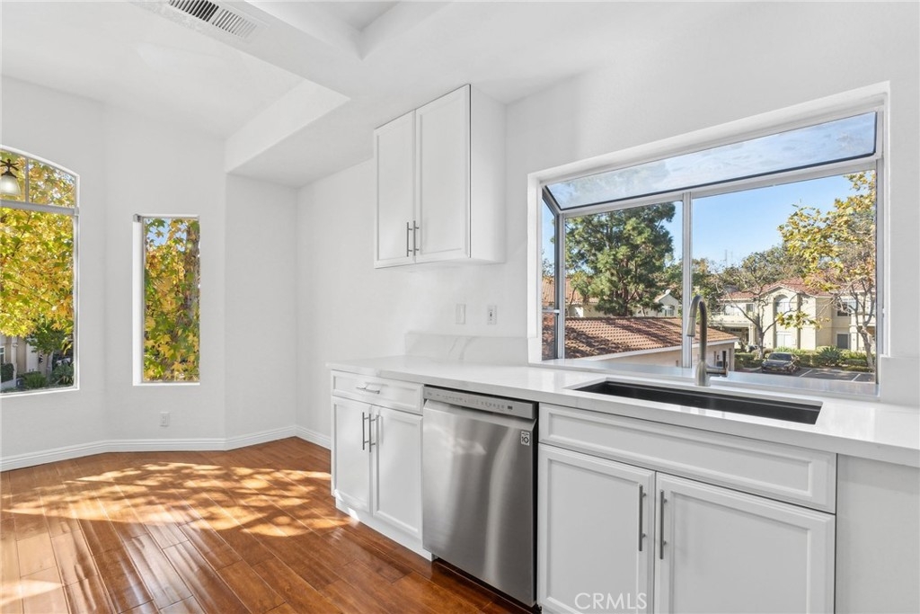 Extremely rare and valuable opportunity, 2 bedrooms plus an extra accessory room! Special builder’s addition, 1 of only 3 known to exist in the community. The third room, loft, office or lounge is 160 additional square feet that is surely to benefit anyone within the Laguna Audubon community, ideally situated near Laguna Beach. Parents, enjoy the benefits of the highly rated Laguna Beach School district with the added convenience of having the School bus stop 800 feet from home. Perfectly located in its private pocket as you enter the complex you will have your assigned private open parking and your enclosed car garage within feet. Enjoy entering your abode on the second level directly from your parking spaces. This fully 2024 remodeled home enjoys ultimate privacy without anyone above or below. Take pleasure from the 15 foot high vaulted ceilings as you enter. The living room offers a cozy fireplace, lots of windows bringing ample natural light connected to a private patio. The Kitchen is equipped with brand new or like new stainless steel matching LG appliances, Quartz countertops, enlarged Kraus sink and a cozy bay window. Ample amount of room for additional kitchen storage and an oversized fridge. Enjoy the warmth of wood floors throughout until you get to the large Master suite with vaulted ceilings, skylight, double vanity sinks and oversized tub. All bathrooms have all new fixtures. Water is being supplied through a brand new water heater. The community has been fully re-piped with PEX piping, ensuring peace of mind and reliability for years to come. The distinctive accessory room that begins from the upper landing of an architecturally pleasing spiral staircase has been used by the owners as a cinematic entertainment room with a queen fold out for guests. There are two attic access doors for added storage and a designated area for built-in closets. HOA covers water, trash and garage electricity. Garages on building corners such as this unit have the opportunity for EV charging expansion. This garage is prepared with a built-in desk, workbench, and Storage loft. Association plans are set for entire exteriors to be repainted 2025. Enjoy resort-style amenities including pools, spas, a gym and clubhouse only 100 feet away. Close access to toll roads, freeways, beaches, shopping and dining. This move in ready home presents an incredible opportunity for an exhilarating coastal lifestyle.