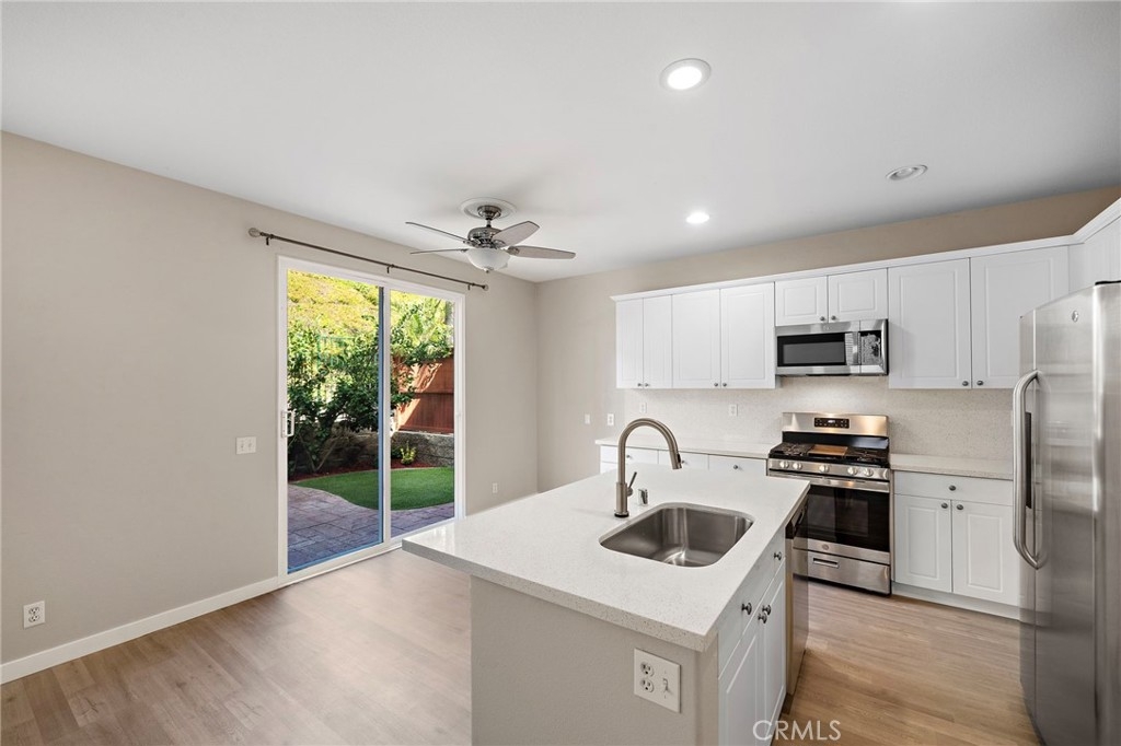 Your dream home awaits! Don't miss out on a great opportunity to own this "rare find" jewel located on top of the hill, comfortably nestled on a quiet cul-de-sac in the highly desired Soleil Aliso Viejo Community. Open and flowing floorplan features: living room dining room combo; beautiful newly installed wood-like vinyl flooring throughout; powder room; family room with fireplace flows effortlessly into a bright and welcoming kitchen with newly installed quartz counter tops, faucet & dishwasher; step out the sliding door and into the private backyard, perfect for entertaining friends and family. Upstairs you will find a large landing with built-in linen cabinets; laundry area; an open loft retreat area perfect for an office, playroom or a 4th bedroom; 2 nice size secondary bedrooms; guest bathroom features shower in tub, dual sink vanity with newly installed mirror & faucet; master bedroom with walk-in closet; master bathroom boasts dual sink vanity with newly installed mirror & faucets, tub and shower. Attached newly painted 2 car garage. Conveniently located to parks, schools, shopping, restaurants, entertainment, canyons, golf, transportation and more!