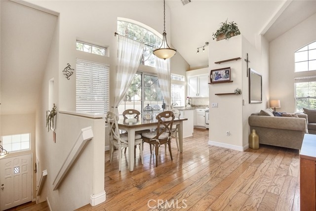 **THE PERFECT GIFT FOR THE HOLIDAYS** CLEAN & BRIGHT END UNIT WITH NO ONE LIVING ABOVE OR BELOW! Welcome to 164 Montara - an immaculate 1 bedroom + 1 bedroom-sized loft with soaring ceilings providing plentiful natural light. The beautiful hardwood entry leads you upstairs to more gleaming hardwood floors on the main floor where you will find a very open living space. Off the livingroom, you will find the updated kitchen with white cabinetry and granite countertops, and can continue out the sliding glass door to your large, private patio perfect for entertaining. Also on the main floor, you will find the large master bedroom with a dual closets, ceiling fan, and en-suite bathroom with double sinks. The spacious upstairs loft has it’s own full bathroom, private balcony, and closet with additional interior storage area. Plenty of upgrades including: new blinds & light fixtures, water heater, microwave & bathroom faucets, and resurfaced fireplace, and the condo has been repiped with PEX piping. This condo has an attached single-car garage plus 1 assigned parking space in front. It’s in close proximity to the neighborhood salt-water pool & spa, and within walking distance to Aliso Viejo Town Center, Starbucks, Trader Joe’s, schools and parks. Shows well - ready to move in!