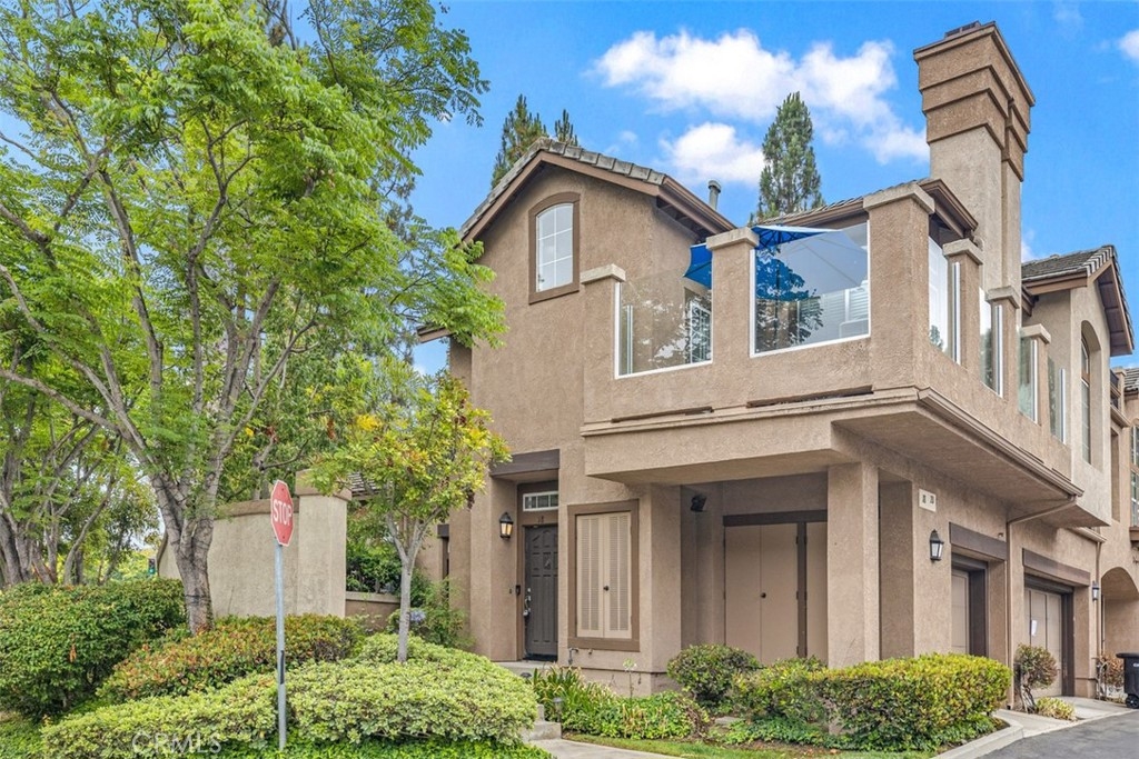 Light & bright upper end unit 2 bedroom, 2 bath condominium in the prestigious St. Tropez community of Aliso Viejo. Carriage style located above garages. Direct garage access leads to an inside formal entryway with coat closet and stairway to the main floor, where you'll reach the spacious dining and living rooms. The living room features a gas fireplace, ceiling fan and French door access to the relaxing exterior deck. Kitchen includes stainless appliances, gas stove, vaulted ceilings, recessed lights and breakfast bar. The primary bedroom boasts a large mirrored closet with wire shelving and drawer organizers, ceiling fan, and bath with tiled flooring and dual vanity. The secondary bedroom has double door entry and mirrored closets with wire shelving, while the hall bath accommodates the convenient interior laundry. New HVAC system, nest thermostat and ring doorbell. A direct access garage includes extensive cabinetry, extra storage area, custom lighting & overhead storage rack. Community pool & spa complete with restrooms and showers, plus a short walk from Argonaut and Pinewood Parks with sprawling grassy fields, basketball courts, baseball fields & tot-lot. Nearby walking trails too! Just minutes to the 73-toll road, Aliso Viejo Town Center, shopping, restaurants, resorts and Laguna Beach!