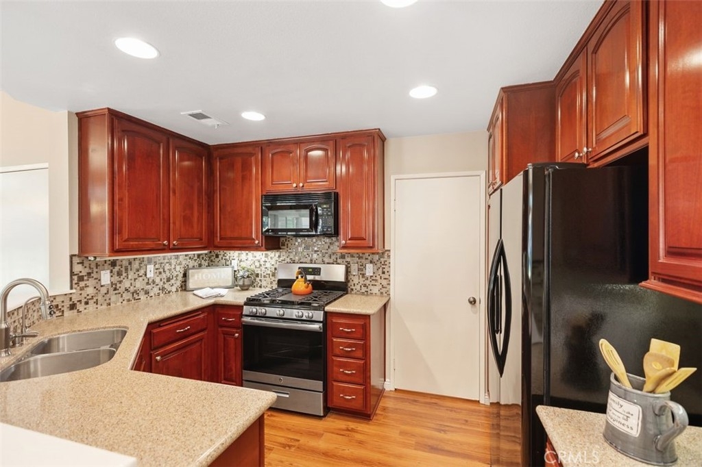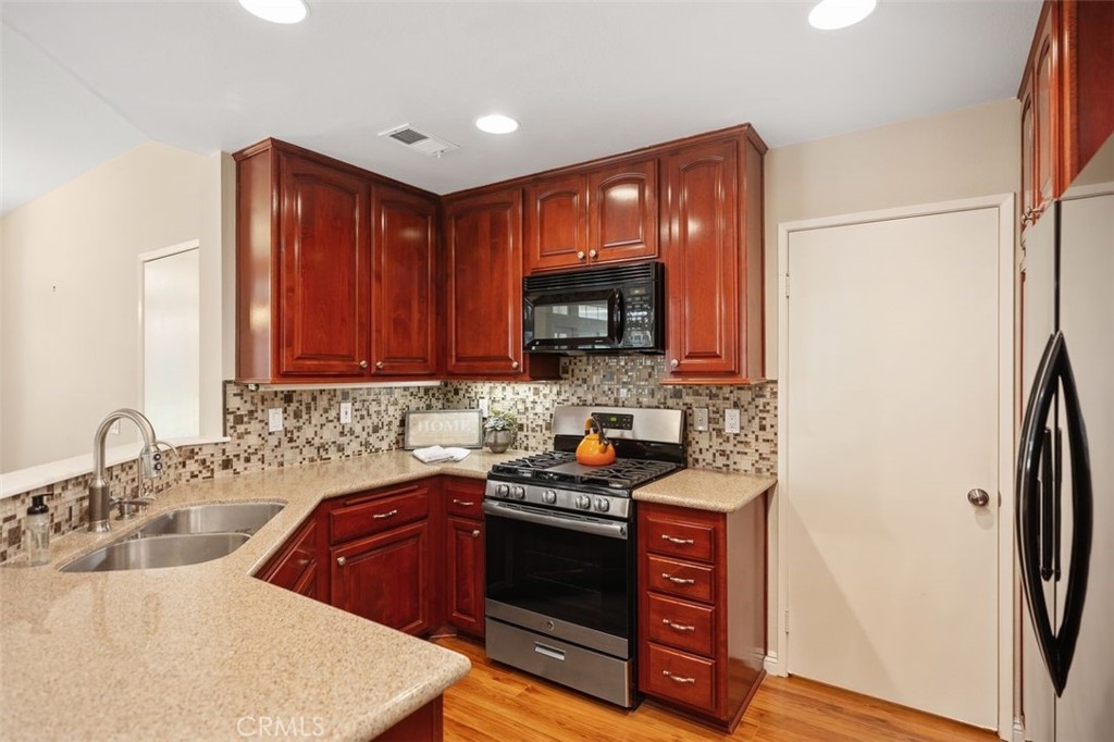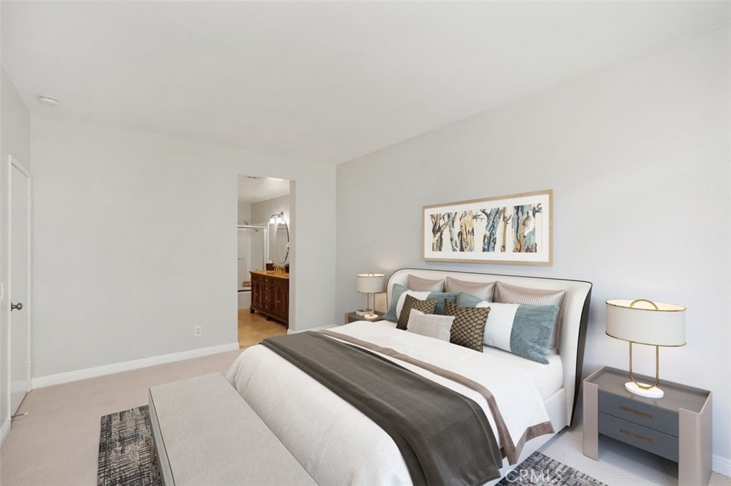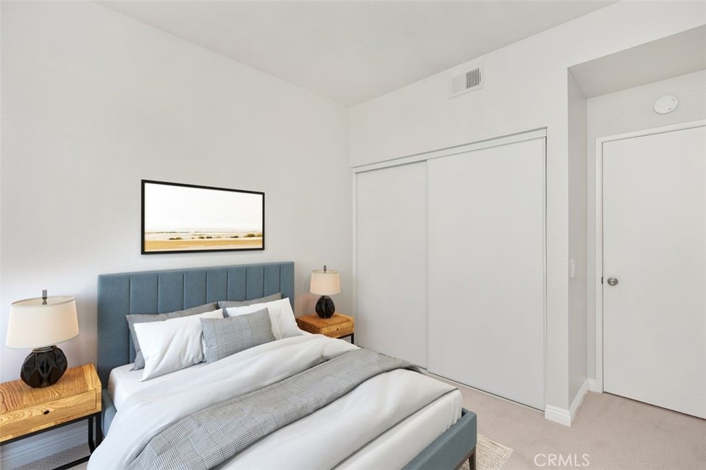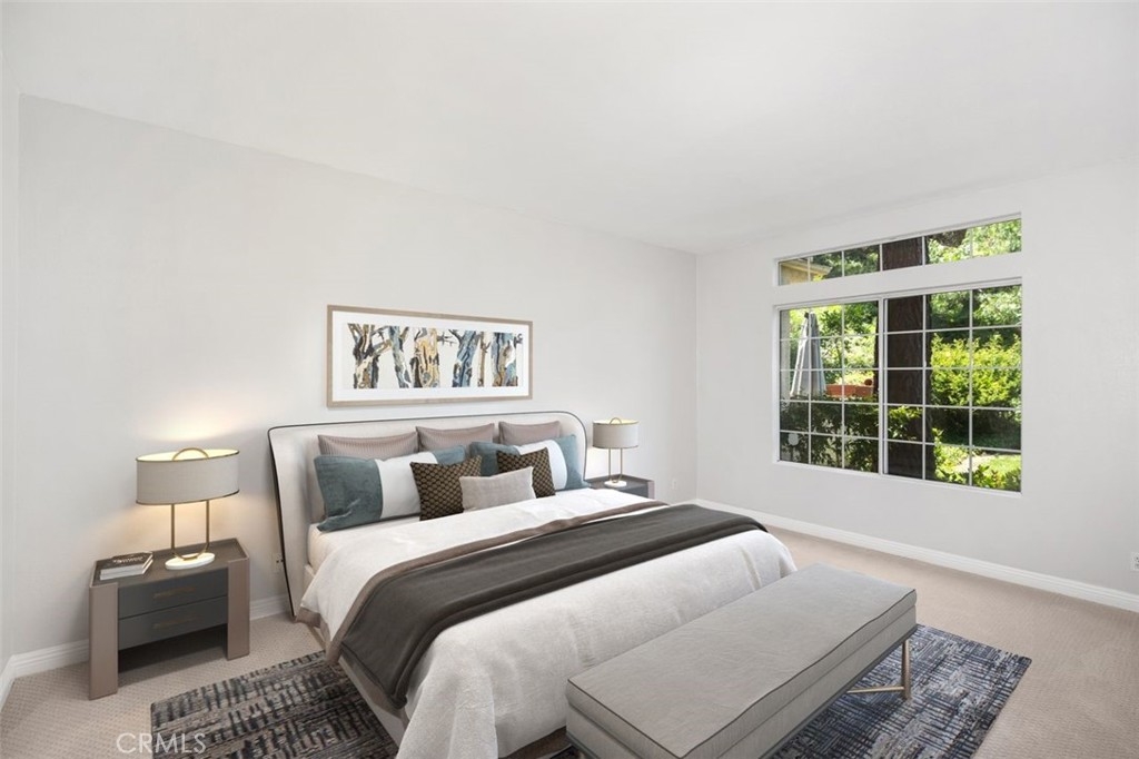 Charming single-level condominium located in the desirable St. Tropez Community of Aliso Viejo offers an extremely private location with serene greenbelt views. The corner unit boasts a wrap-around covered patio, perfect for enjoying the Southern California weather. Spacious living and dining areas are filled with natural light, highlighting the wood laminate flooring and neutral paint. The kitchen features granite counters with a glass tile backsplash and ample cabinets. This home includes two bedrooms, two bathrooms, and an inside laundry room for a full-size washer and dryer. The newly carpeted bedrooms provide a cozy retreat, including a large walk-in closet in the master bedroom. The attached two-car garage with epoxy coating and overhead storage offers convenient parking. The community pool and spa are just steps away, offering a perfect place to relax and unwind. Aliso Viejo Town Center, shopping, dining, entertainment and numerous parks are all nearby. Quick access to the 73 Toll Road and beautiful California beaches makes this location ideal. The St. Tropez complex is currently FHA and VA approved, and there are no Mello-Roos fees. This lovely home (which has been virtually staged) is a great opportunity to own a piece of Southern California's serene lifestyle.