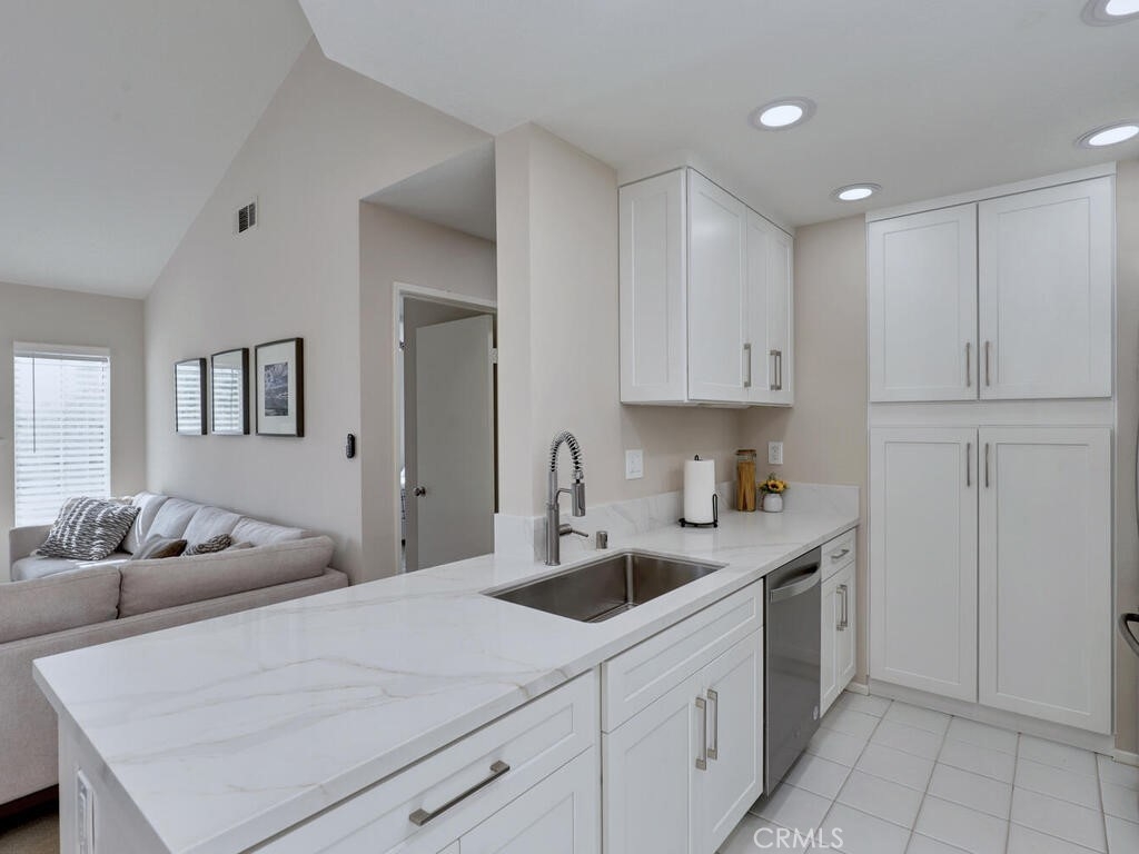 Great Corner Unit-Light and Bright and move-in ready, 71 Cloudcrest is a stylish and upgraded unit in Aliso Viejo, a gorgeous community in the heart of Orange County. Step inside to a beautifully remodeled interior with a custom white kitchen featuring quartz countertops, modern cabinetry, and stainless steel appliances for a fresh, contemporary feel. Updated lighting and abundant natural light fill open living and dining spaces anchored by a cozy fireplace, while a private balcony is perfect for morning coffee or relaxing evenings. The newly remodeled primary bathroom includes dual sinks, quartz countertop, spacious shower, and elegant tile floors for practical luxury. The updated second bathroom extends the same attention to detail and modern finishes, offering comfort and convenience for guests etc. Just steps across the street, Creekside Park features scenic walking paths, nature trails and community favorite dog park, ideal spot for pet owners and anyone who enjoys the outdoor. Residents of The Villas also enjoy a resort-style community pool, perfect for relaxing or socializing on sunny days. Town Center shopping, dining, and gorgeous beaches are only a short drive away. This turnkey home is ready for its next chapter, visit, experience the light-filled spaces, and make it yours. Don't wait, this one wont last long! DM me for a private showing.