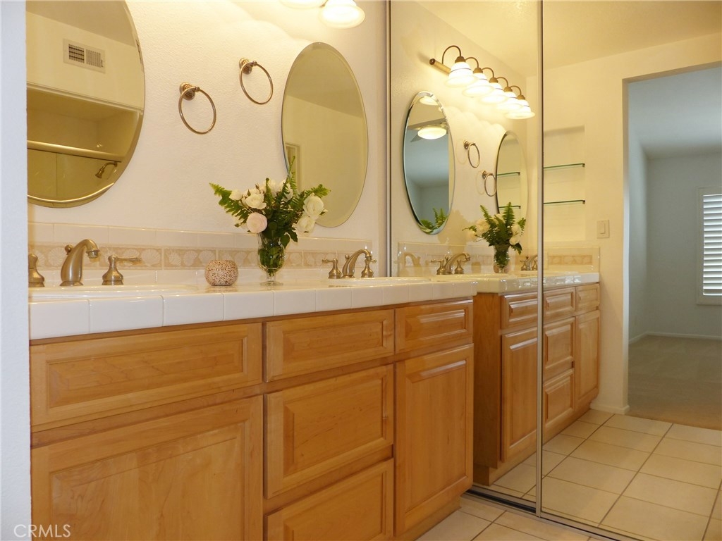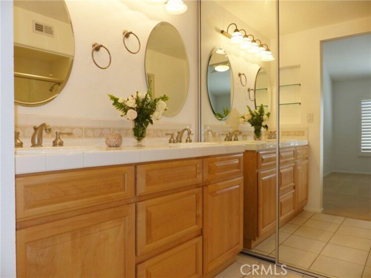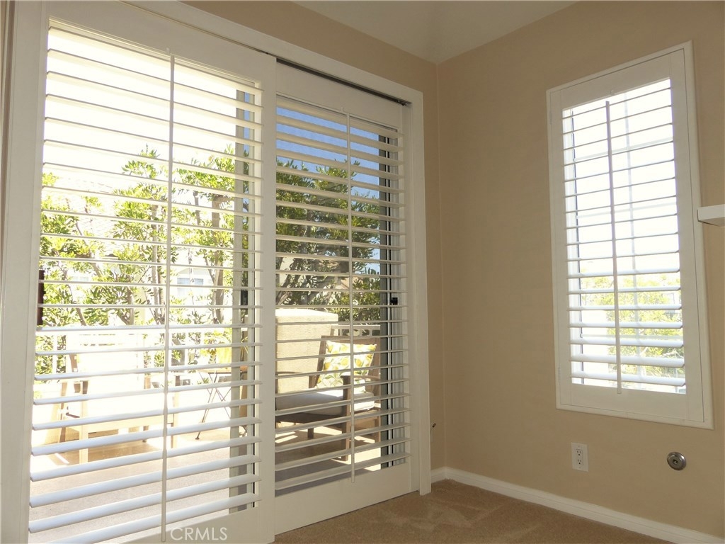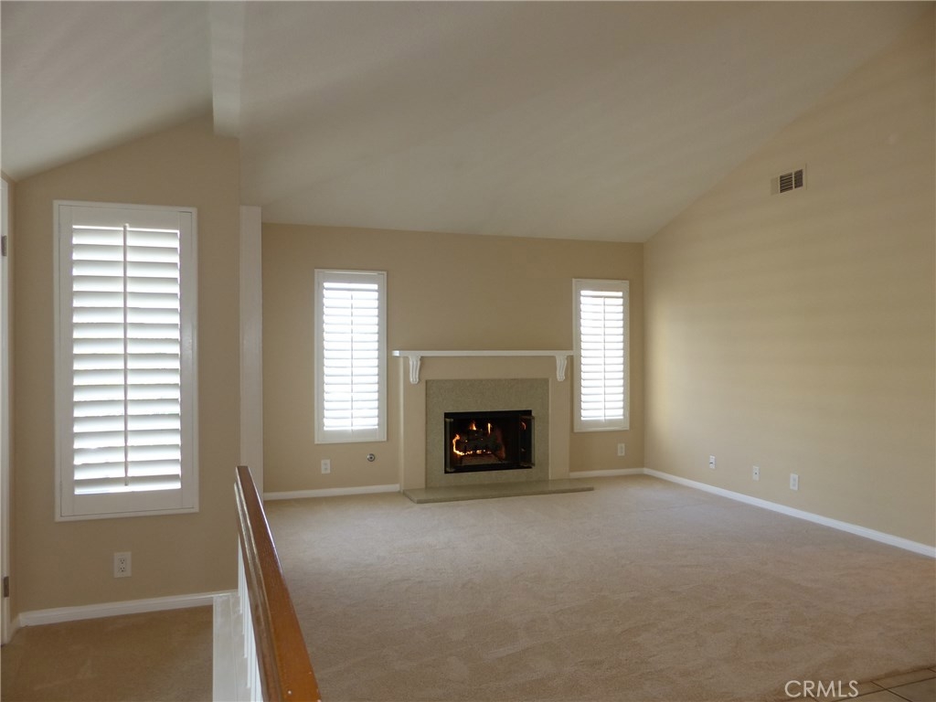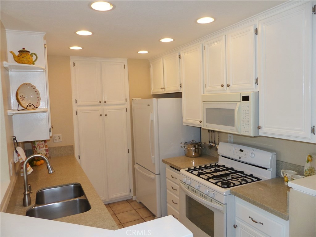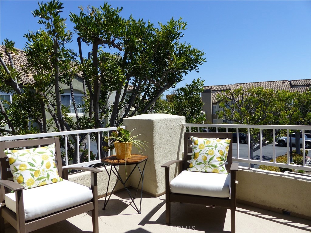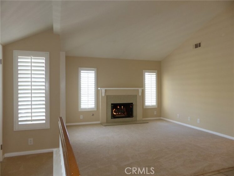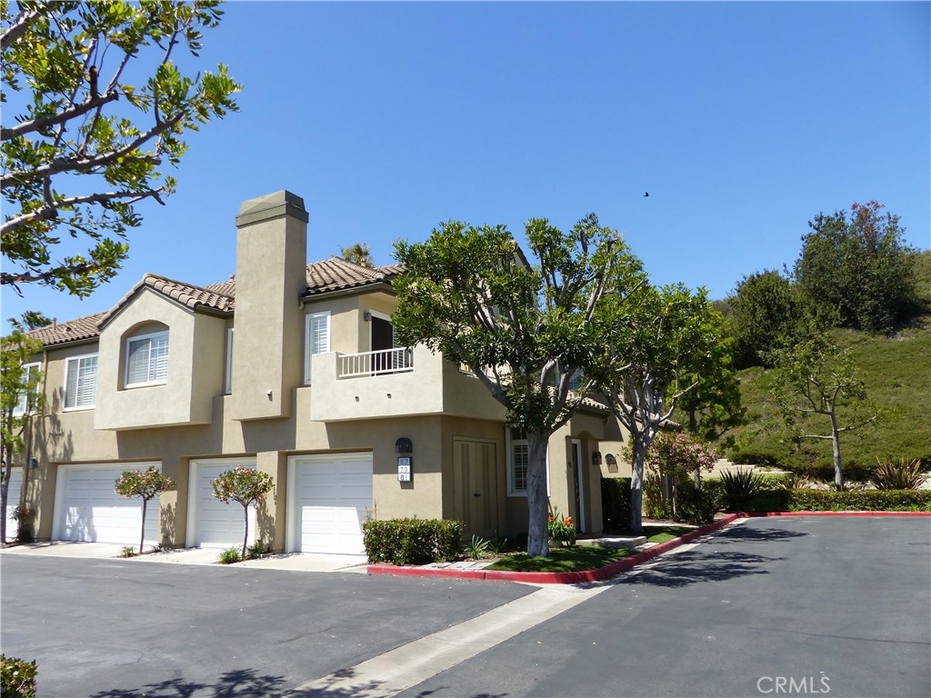 PRICE REDUCED FOR FAST SALE! Newly updated private end unit Villa in a small hillside community nestled between two great parks! The spacious entry foyer with privacy “Rain Glass” welcomes you to this open floor plan with lots of light and vaulted ceilings. The fireplace with new quartz face, hearth and custom mantle are a focal point for the spacious living room with high ceilings. Adding to the ambiance are beautiful Plantation Shutters throughout, as well as fresh paint and new plush carpet. The dining area is well served by the open kitchen which overlooks the living room and features new quartz counters, stainless steel sink, matching faucet plus a 5 burner range, convection oven and an included refrigerator. The hall bath features a raised vanity sink with inlaid tile, solid tub, tile walls and glass enclosure. The master suite offers 2 large double mirrored door closets, custom shelving system, high ceiling & fan. The master bath features a custom tiled shower, glass doors and raised dual vanity sinks. The bedrooms and balcony offer a nice view too! Your Villa comes with a reserved parking space plus a one car direct access garage, cabinets along with a washer and dryer. Close to 2 incredible panoramic valley and mountain view parks, Aliso Creek Bike Trail, A.V. Middle School, Town Center entertainment & shopping. The HOA repiped with PEX, recently painted exteriors and new garage doors! Low Taxes and No Mello - Roos Assessments. Move In Ready!