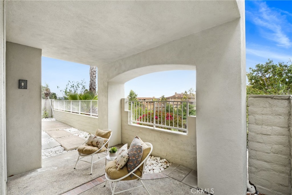 RARE... Single Level.. Ground Floor.. End Unit...Nestled in the highly sought-after community of "The Villas", this updated 2-bedroom, 2-bathroom condo offers stunning canyon views and a prime location just minutes from shopping, dining, and a short drive to Laguna Beach. The open-concept floor plan is designed for both functionality and entertaining, with a seamless flow from the crisp/clean white quartz kitchen to the dining area and living room, complete with a cozy fireplace. The primary suite features a private en-suite bath and a custom-built walk-in closet. The slider doors off primary suite take you to your private patio. Enjoy recessed lighting, designer light fixtures, new paint throughout, and high end upgrades in both bathrooms. A standout feature of this home is the expansive patio that spans the length of the unit, perfect for relaxing and enjoying the breathtaking views. Additional highlights include an attached 1 car garage with direct access to the unit + 1 assigned parking space. Don’t miss this opportunity to own a stylish and well-appointed home in the heart of Aliso Viejo!