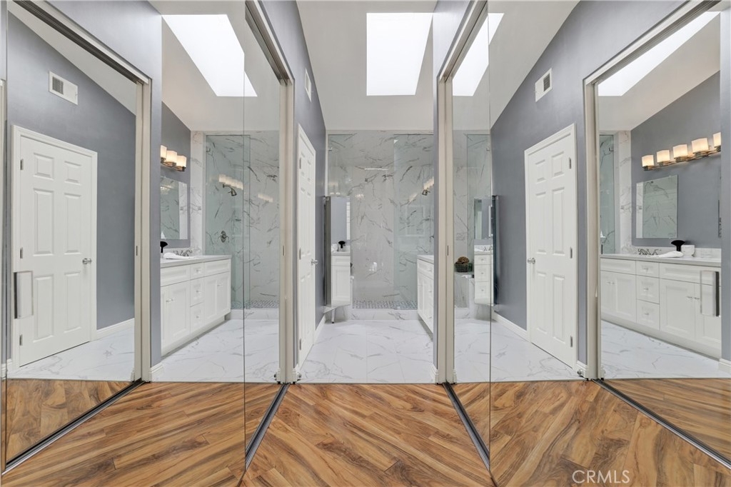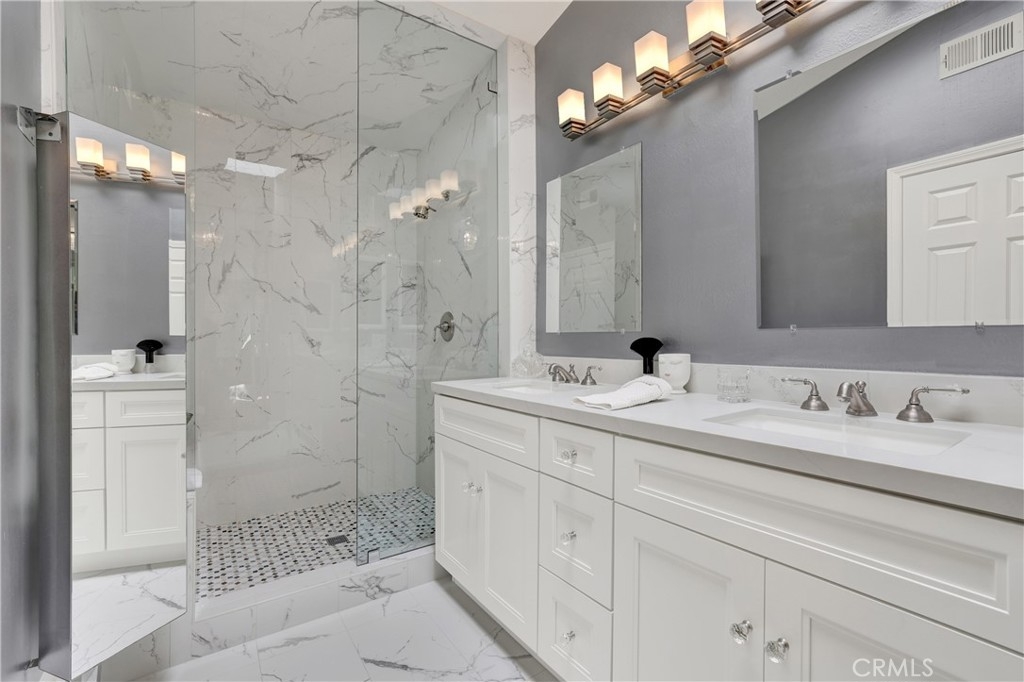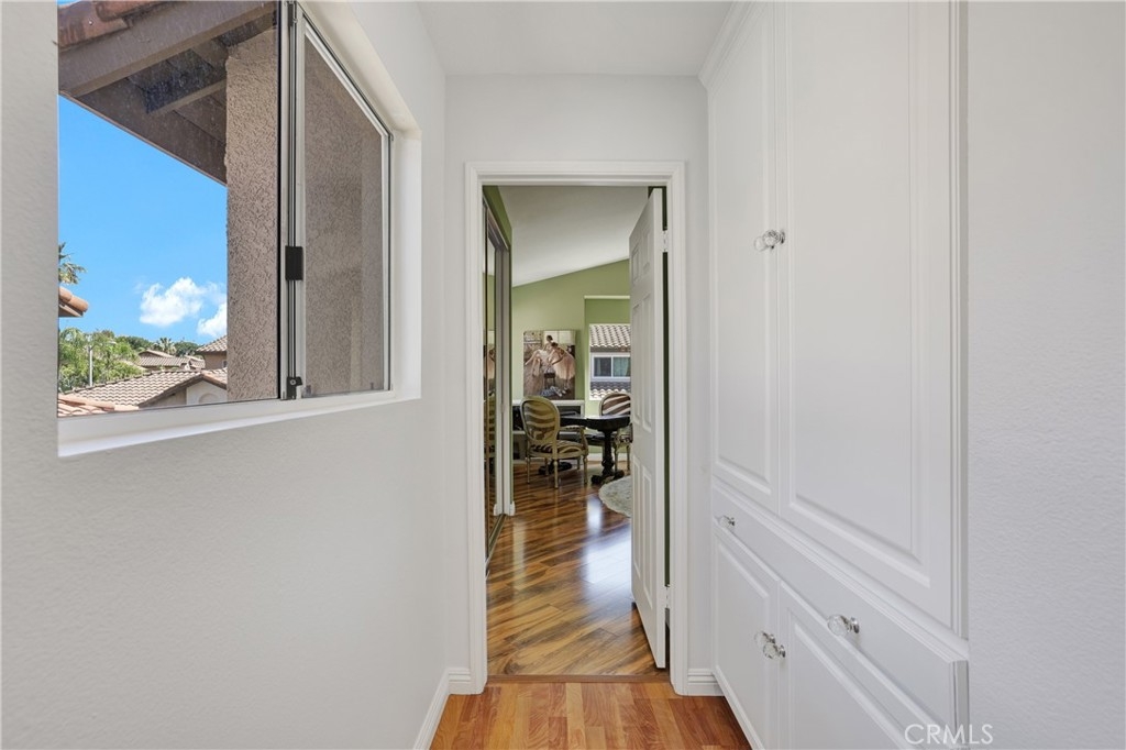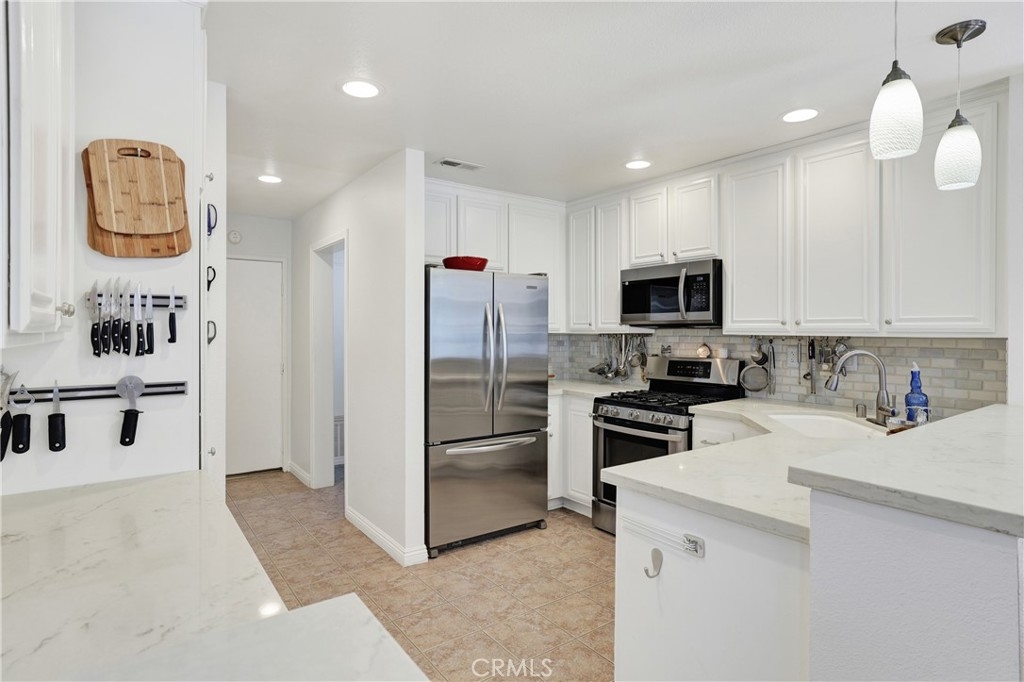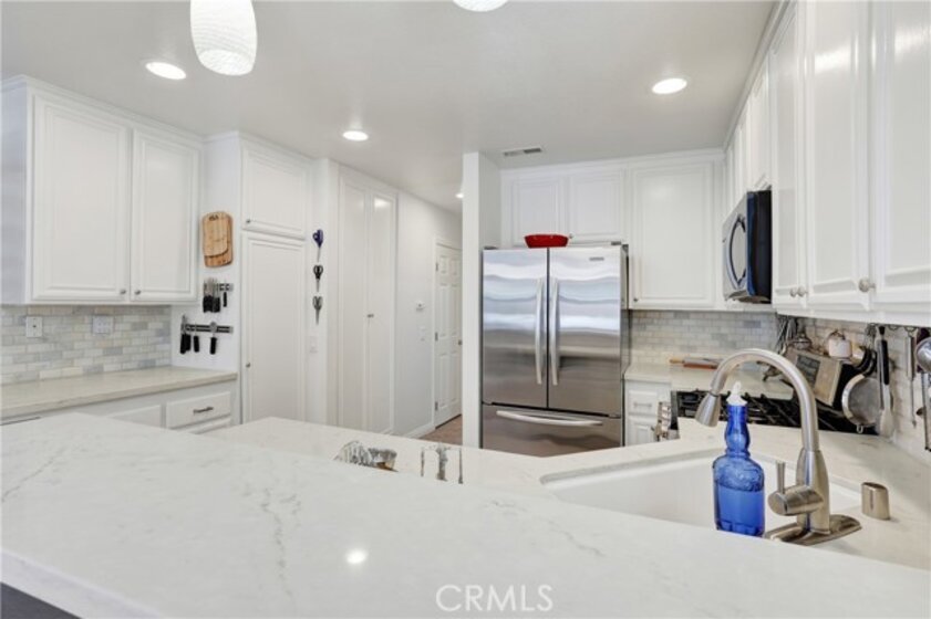 Nestled within the Windwards enclave of Aliso Viejo, 69 Conch Reef presents a rare opportunity to own a beautifully appointed residence. This desirable two-story corner home shares only one common wall and showcases thoughtful design, where high-quality materials and refined finishes create an atmosphere of modern European-inspired elegance. Upon entry, soaring ceilings and an abundance of windows fill the home with natural light, framing picturesque views of trees and colorful skies. The living room exudes sophistication, centered around a gas fireplace with a marble surround and dramatic vertical space. The kitchen is equally impressive, featuring sleek marble countertops, upgraded stainless steel appliances, and custom storage tailored for both function and style. Upstairs, the spacious primary suite offers carefully integrated built-ins for organized living. The ensuite bath is a true retreat, complete with dual floor-to-ceiling mirrored closets, marble finishes, and a beautifully remodeled walk-in shower. Located down the hall, the private secondary suite is enhanced with thoughtfully designed built-ins—including a discreetly integrated refrigerator—making it ideal as a guest room, office, or flexible living space. Blending contemporary European design with versatility, this exceptional home caters to a variety of lifestyles. Ideally situated in the sought-after community of Aliso Viejo, residents enjoy access to top-rated schools and close proximity to Laguna Beach, Newport Beach, John Wayne Airport, scenic wilderness parks, and a wide array of amenities.