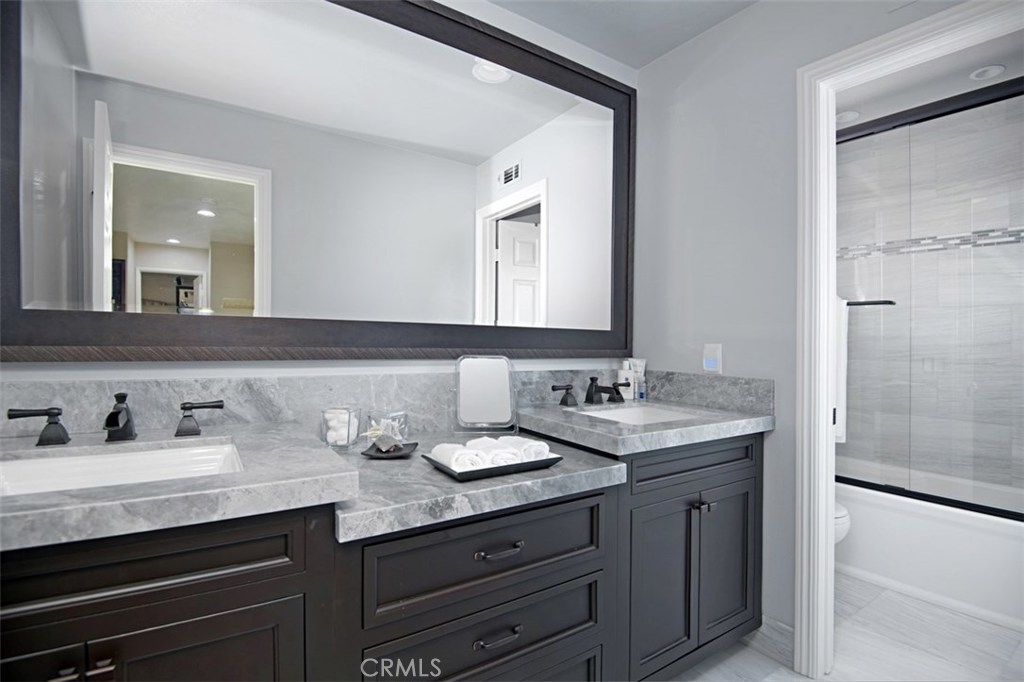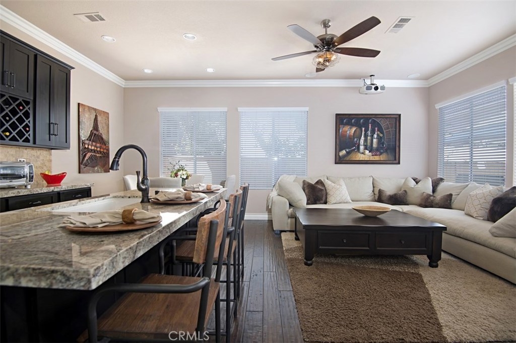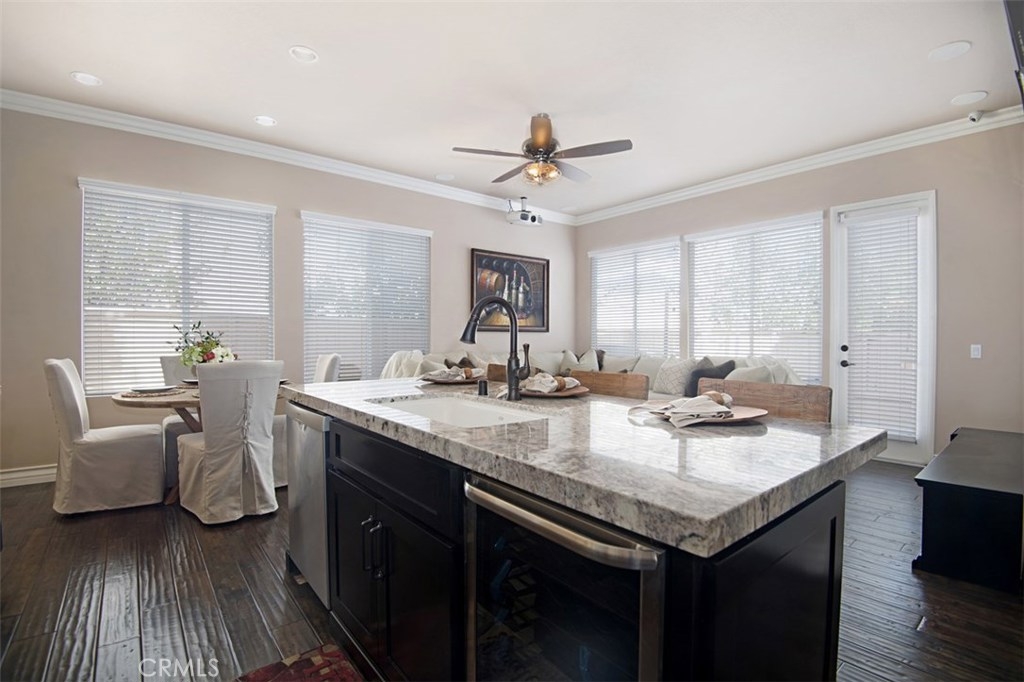 Beautiful newly remodeled 3 bedroom, 2.5 bathroom detached home. This home features a formal family room with a cozy fireplace plus a separate living room right off the kitchen with 108” projection and theater surround sound. The custom remodeled gourmet kitchen is complete with solid maple cabinets, new stainless steel appliances, granite counter tops, center island and breakfast bar. Downstairs offers an abundant amount of natural light and accompanied by plantation shutters throughout the house. A luxury master bathroom with steam room in this highly upgraded shower, luxury guest bathroom, work out gym and relaxing spa. Not to mention hardwood flooring throughout the downstairs, crown molding, ceiling fans, recessed lighting, new paint and so much more! You will feel safe with security cameras and alarm and a built-in fireproof safe. Must see this gem before it’s gone!