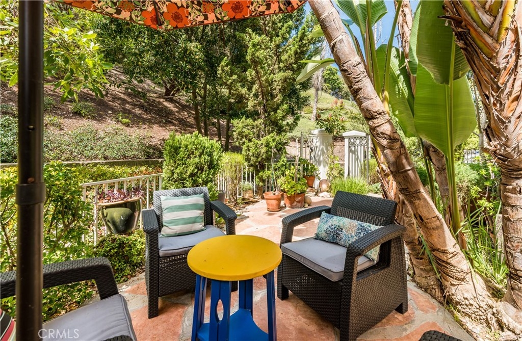 If you value privacy, you’ll love this delightful townhome tucked away in a small, carefully planned community with winding sidewalks, well-manicured grounds, beautiful plantings, and gorgeous pool and spa. Enjoy entertaining on the oversized, wrap around garden patio with an abundance of tropical plants. This home is perfect for indoor/outdoor living. Enter the Living Room with dramatic high ceilings, fireplace and sliders to patio plus intimate family room with fireplace. You’ll find lots of living space in the flexible floor plan (living room or family room could be used as office or playroom) There’s versatility in serving your guest in the large kitchen with lots of cabinets and counters or the formal dining room. Relax in the elegant master suite with high ceilings, roaring fireplace, large windows and balcony overlooking the scenic patio. The spacious master bath is equipped with a walk-in closet, separate shower and soaking tub. This well maintained home features: large windows with views of green belt, bamboo flooring on the 2nd floor, 2-car garage with direct access and plenty of storage, separate laundry room and more! There is fresh new paint, ready to move in. The tract was recently re-piped and exterior repainted. The Tivoli I community is convenient to shopping, restaurants, parks, Laguna Beach, Soka University, hiking trails, freeways and the 73.