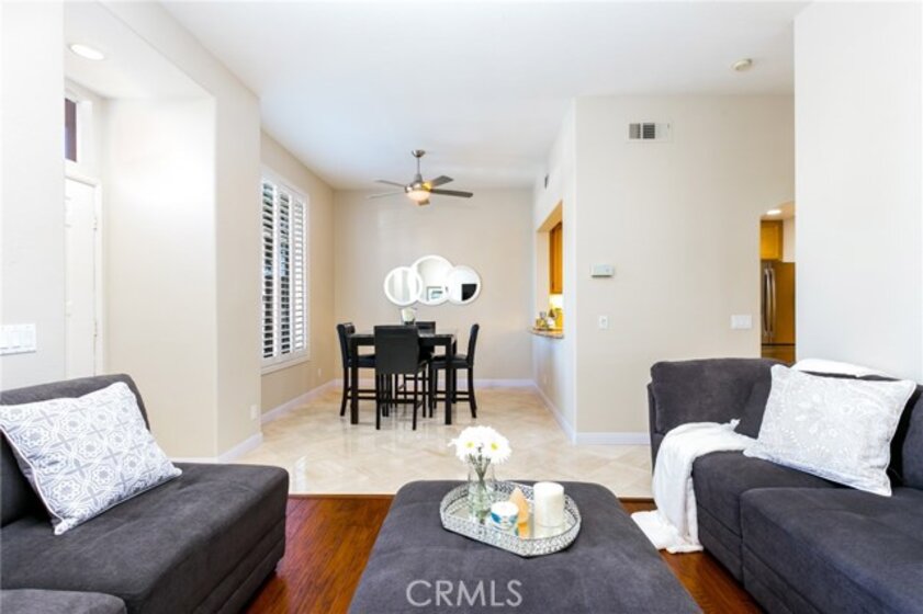 Come fall in love with this former Model, Luxury Condo located in the upscale, resort-like community of Tivoli in Aliso Viejo. This light and bright 2 bed, 2 bath condo with an attached garage features a mix of travertine and rich hardwood flooring and has been adorned with additional tasteful upgrades like granite countertops, brand-new Stainless Steel appliances, neutral paint, plantation shutters, a hardscaped, lovely patio area and much more! All new Plex-piping is an additional huge plus! The spacious master suite comes with dual vanity sinks and a walk in closet for extra storage. All new and upgraded showers throughout the house. The HOA offers tons of features like water,fire, earthquake insurance, interior plumbing, pool/spa, roof, and termite coverage. The community of Tivoli features a resort-style pool and spa in a quaint tract of just 80 homes and condos. All of this offered with NO melo-roos. Great location near Shops, Soka Unversity, Wildreness trail and Parks. This home has it all and is truly move-in ready!
