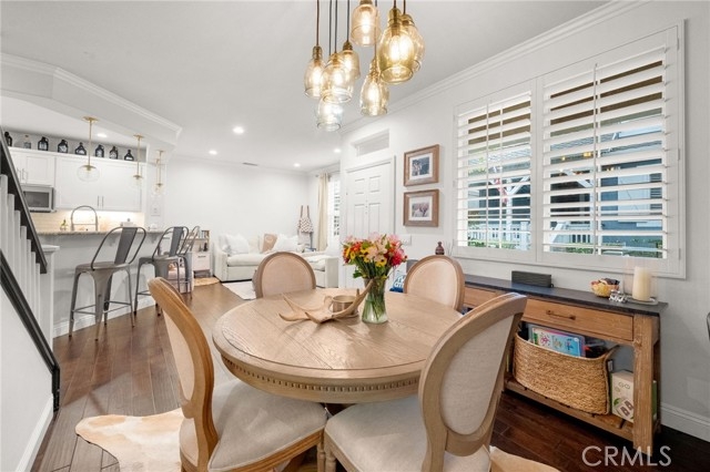 Welcome to this adorable Cape Cod-style 3-bedroom, 2.5 bath home offering over 1,500 sq.ft of beautifully updated living space in the highly sought-after 12 Picket Lane community. Step inside this free-standing home with no attached walls to discover gorgeous hardwood flooring throughout the first level, a cozy gas fireplace in the dining room, and a custom bar area complete with a wine refrigerator, and complemented by Pottery Barn lighting — perfect for entertaining family and friends. The modern kitchen features updated cabinets (2021), new refrigerator (2022), a 5-burner stove, and it includes the bar stools! Plantation shutters throughout add a refined touch to every room! Enjoy peace of mind with paid solar panels and a newer installed HVAC system installed in 2020. Additional upgrades include phantom screens on the front and back doors, and a direct-access garage that will provide convenience. Upstairs, the primary suite offers a barn door leading to a spacious walk-in closet, and a luxurious ensuite bathroom with dual sinks, a soaking tub, and a separate shower. Two additional bedrooms share a Jack and Jill bathroom with a newer tub and tile, ideal for family or guests. Step outside to a private, beautifully-lit patio area — perfect for outdoor dining and entertaining under the stars. Located in a fantastic neighborhood with highly rated schools, this home offers easy access to freeways, and is just minutes from popular restaurants, shopping and entertainment! Don’t miss this opportunity to own a beautifully maintained home that perfectly blends comfort, style, and convenience!