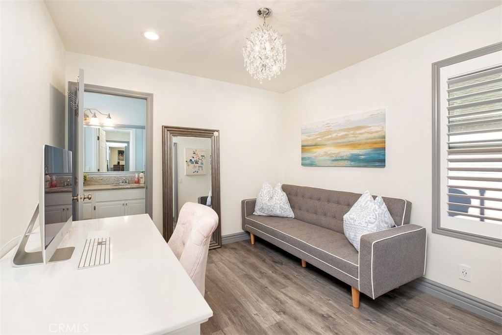 TURNKEY CORNER UNIT PROPERTY! Gorgeous and newly remodeled DETACHED home with upgraded features throughout. Seller created a dream home! Some of the many upgrades: LED recessed lighting throughout with Wemo dimmers, new 6” baseboards upstairs & downstairs, new Benjamin Moore designer paint, Nest thermostat, replaced water heater, wainscoting highlights downstairs, epoxy flooring in garage, garage ceiling storage unit, upgraded USB wall outlets, new kitchen stainless steel farmhouse sink with stainless steel industrial style faucet, new steel core patio door with doggy door, new custom quartz counter tops and backsplash in kitchen, master bath, and laundry, fireplace surround with herringbone design and Carrera marble highlights, new solid core doors in bedrooms and barn door in master bath. Additional ALL NEW upgrades include chandeliers in dining room and guest bedroom, additional LED recessed lights throughout the whole house, LVP flooring on 2nd level with white risers on the stairway, medicine cabinets, mirrors and lighting in master bath and much, much more. Seller also had all air ducts cleaned, upgraded the patio with artificial turf highlights and repainted the backyard fence. An easy move into this house with new epoxy piping throughout the whole house as well! This house is only a few minutes away from an award winning elementary school, a vibrant town center, and everything you would need. This is truly a special home for you and the family!