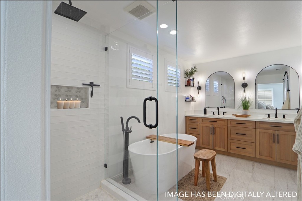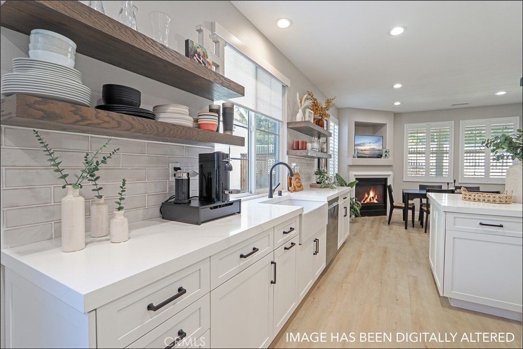 ONE OF A KIND LOCATION WITH FULL DRIVEWAY, SPACIOUS FLOOR PLAN AND SPECTACULAR UPGRADES! Truly a stunning property offering spacious living areas with living and dining accented by designer style shiplap wall and family room with fireplace. Stunning kitchen with center island and bar seating, designer Quartz countertops, designer style backsplash, upgraded shaker style cabinets with upgraded hardware, stainless steel appliances, floating shelves and office niche area with French door access to the large patio area for your outdoor enjoyment and entertainment. Main floor also features direct access to the two-car attached garage with epoxy flooring and powder room with new designer vanity and upgraded fixtures. Sun drenched staircase leading to the spacious second story featuring a large primary suite featuring a large walk-in closet with California Closet organizers and custom barn doors, breathtaking master bathroom featuring a freestanding tub, large walk-in shower with frameless glass enclosure, large vanity with dual sinks, Quartz countertop and upgraded fixtures. Large 2nd, 3rd and 4th bedrooms, conveniently located full size laundry area and totally remodeled full second bedroom featuring a large walk-in shower with designer style tile surround, glass enclosure, large vanity with dual sinks, Quartz countertop and upgraded fixtures. Repiped with PEX, whole house water softener and filtration system, newer and upgraded HVAC system, upgraded flooring and baseboards, added/upgraded recessed lighting, switches and dimmers, fresh exterior paint and so much more. Exceptional location with large front porch overlooking the lush greenbelts and added privacy, walk to resort style pool and spa, highly rated schools within walking distance, excellent proximity to Aliso Viejo Town center with shops, restaurants and entertainment, easy toll road (73) and beach access (via 133) and nearby hiking, biking and nature trails!
