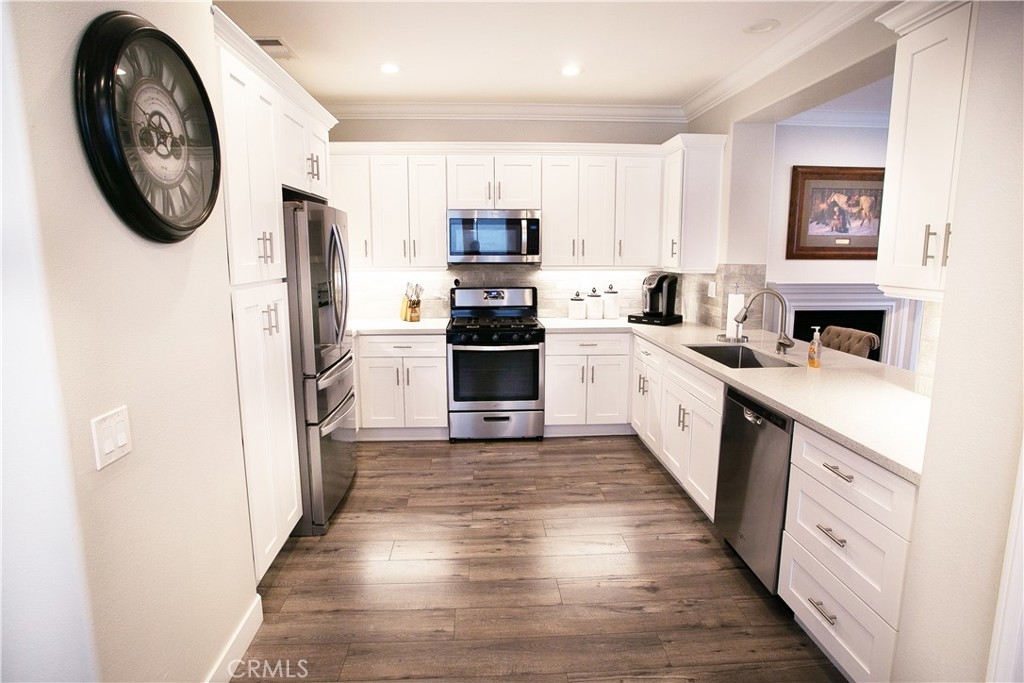 Welcome home to this completely remodeled property located in the highly sought out community of Twelve Picket Lane! As you enter this charming Cape Cod style residence, you are greeted with a contemporary open floor with elegant soft tones and plenty of natural light. The luxurious kitchen features new quartz countertops, white shaker cabinets, stainless steel appliances, recessed lighting & new fixtures. The kitchen flows into the large living room which includes a charming fireplace. The spacious master bedroom features a walk-in closet and remodeled bathroom which includes a bathtub and standalone shower as well a beautiful quartz vanity. The other two bedrooms are separated by a Jack and Jill bathroom which also has newer quartz vanities. Washer and Dryer hookups are included in the upstairs hallway for easy access. The property also features a finished garage with epoxy floor and a side yard with a putting green. Enjoy the amenities that the community has to offer including a pool and heated spa. Just minutes away from award-winning schools, walking trails, and the wonderful Aliso Viejo Town Center which has theaters, top-notch restaurants, and shops! MUST SEE property!