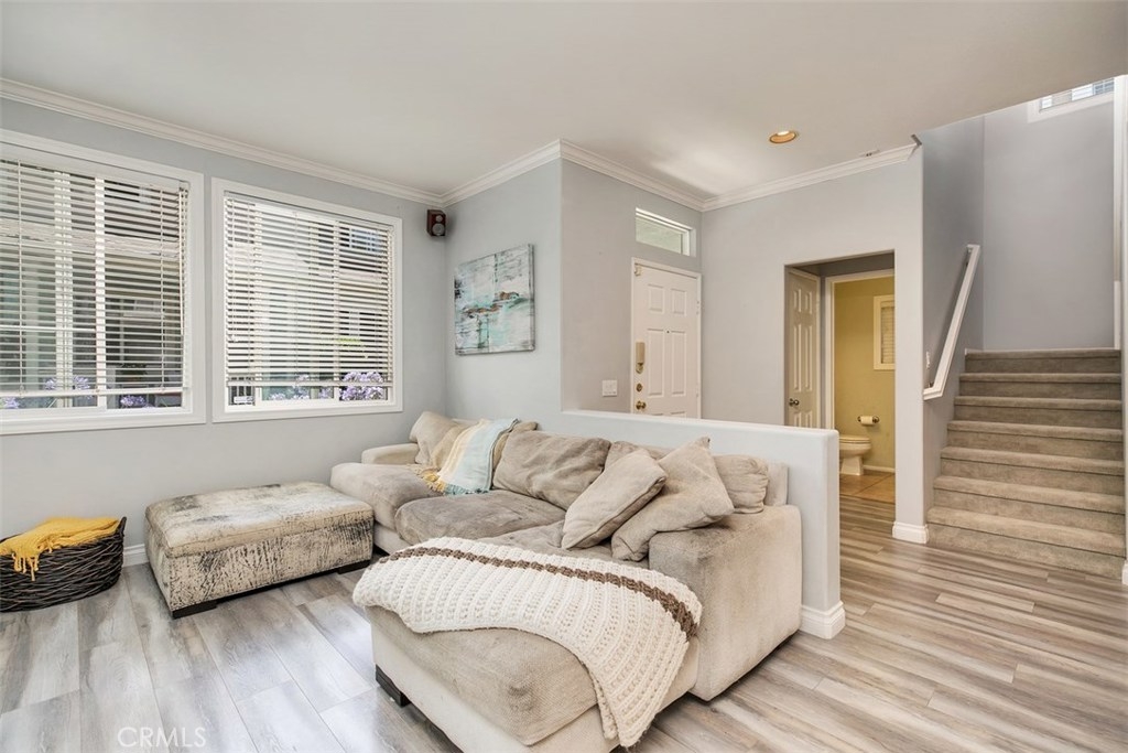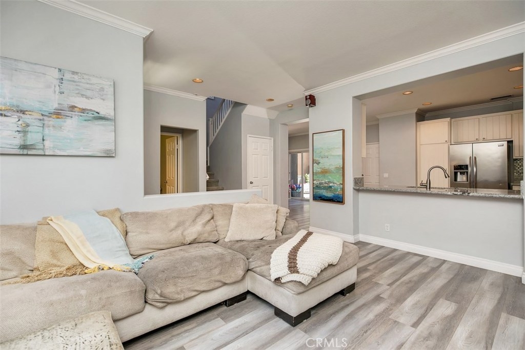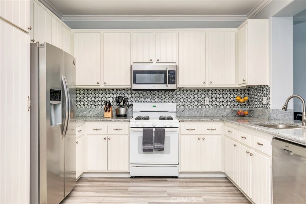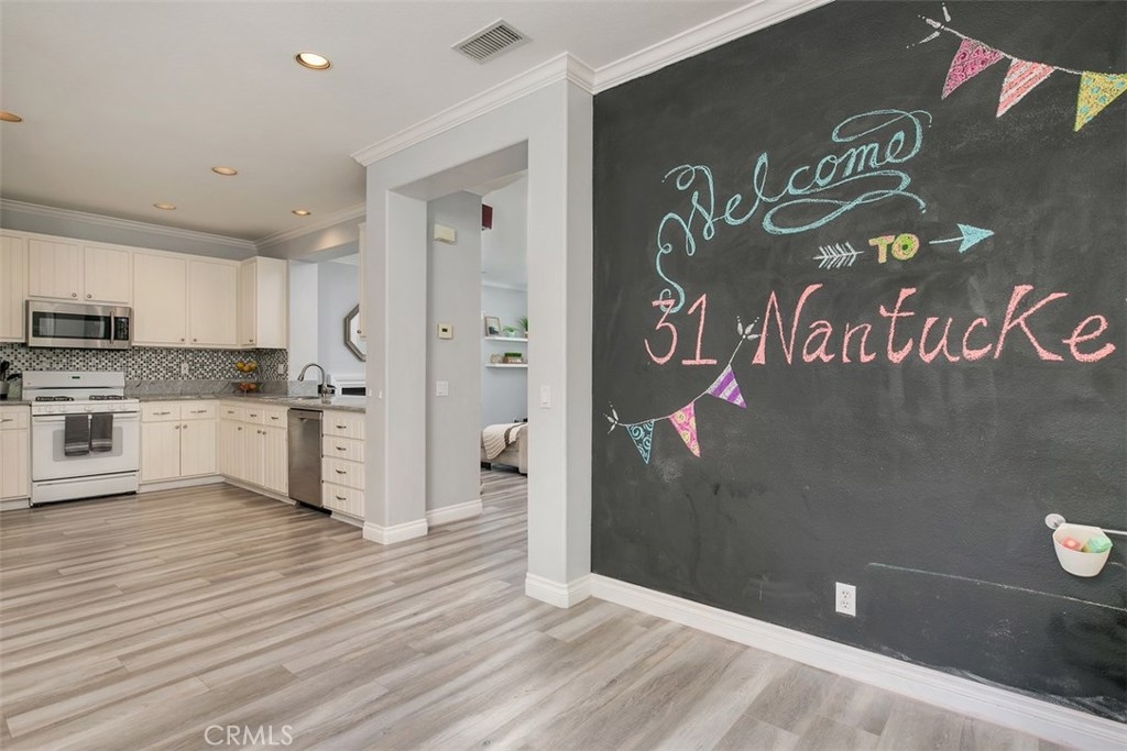The charm of Cape Cod in the heart of Aliso Viejo! This highly desired plan 2 in Twelve Picket Lane is has a terrific floor plan and will wow you with its upgrades. Downstairs you will find the opening between the kitchen and living room has been enlarged to provide for a great open floor plan. The kitchen has been remodeled with gray marble-like granite counters, glass square backsplash, white cape cod style cabinets, stainless steel appliances and sink with a brushed nickel faucet. Throughout the downstairs you will find crown molding, upgraded baseboards, cased windows, recessed lighting, a custom built-in tv niche, a gas fireplace, and gorgeous laminate wood flooring. The property has just received brand new carpet and upstairs you will find unusually large kids bedrooms with a jack and jill bathroom. The laundry is found in the upstairs hallway and the master bedroom has a walk-in closet. There is beautiful outdoor space complete with slate patio tiles and a grass area. This property has a front patio sitting area in addition to the enclosed back patio. The community has an association pool and spa and you are within walking distance to highly rated schools. The property is within a mile of the Aliso Viejo Town Center where you can find restaurants, a movie theater, and shopping and within ten minutes of either Laguna Beach, Irvine, or Newport Beach! This floor plan rarely comes on the market and this is a wonderful opportunity to come and see why it is so desirable!