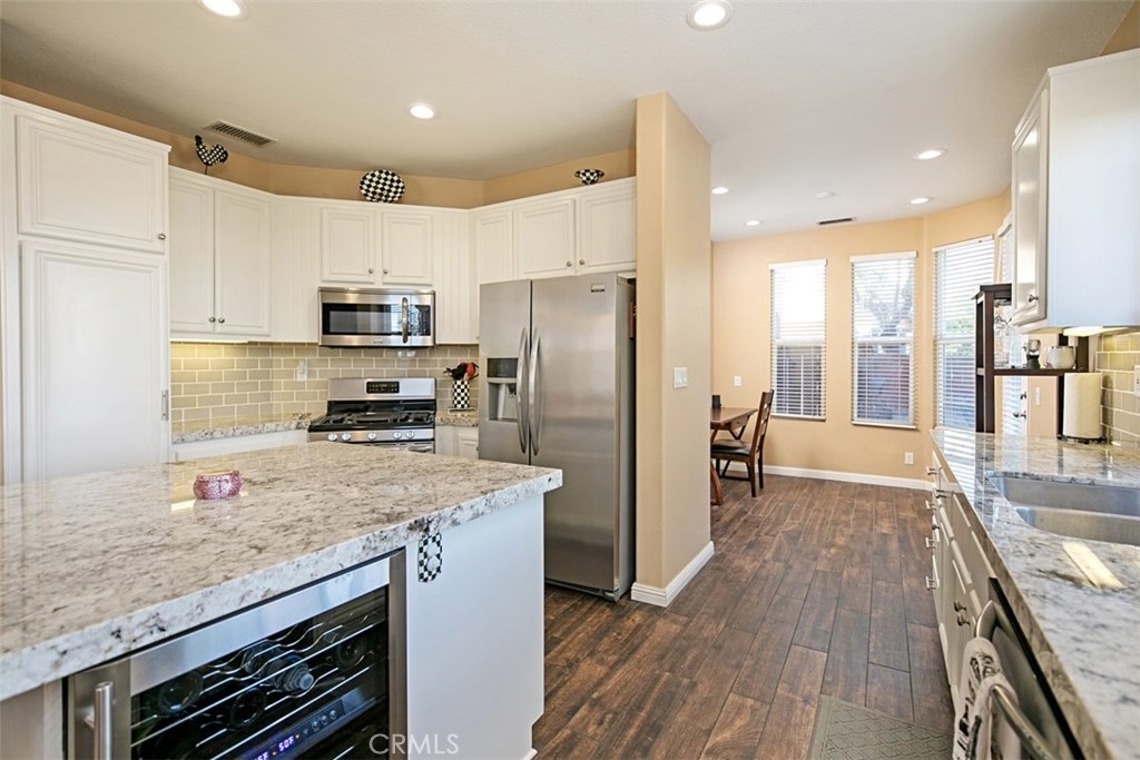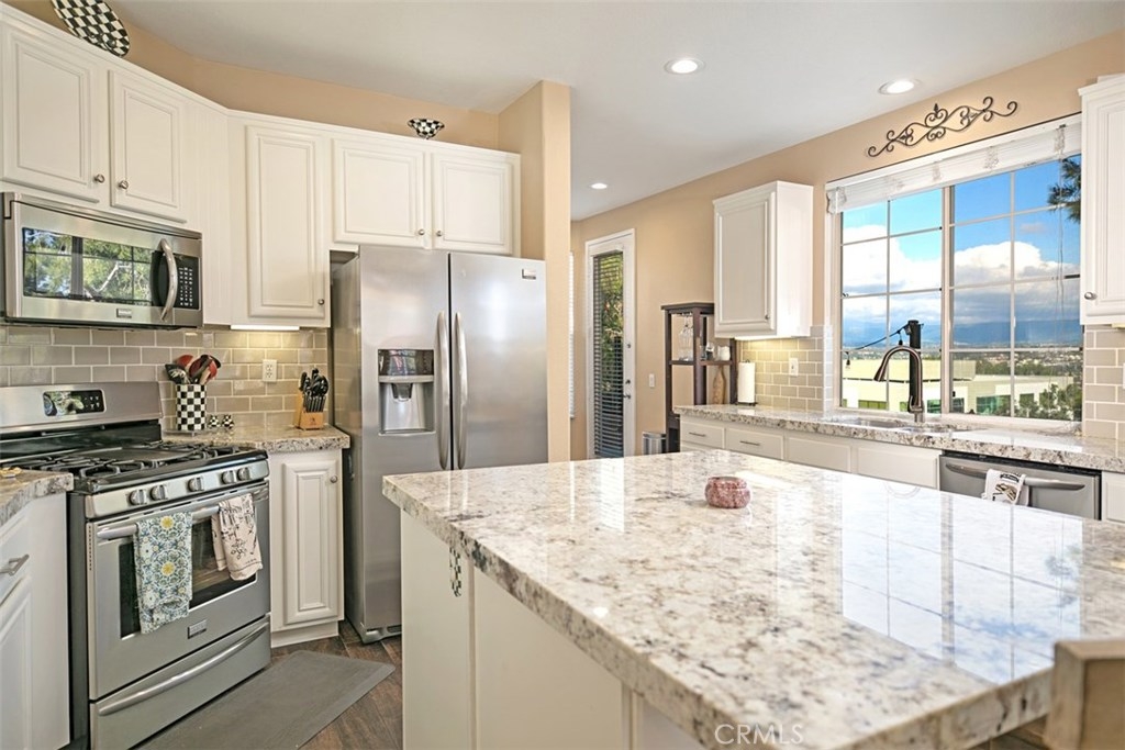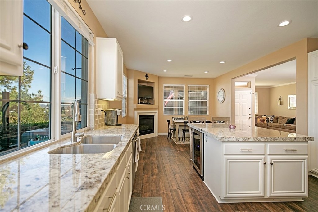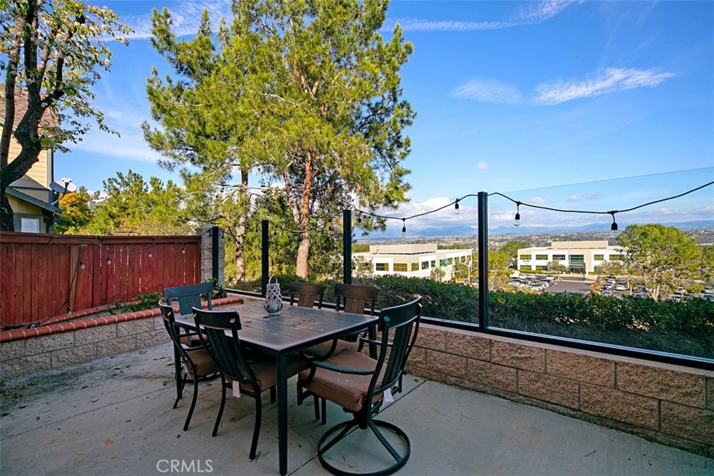 Simply Stunning, Highly Upgraded home located in the prestigious Twelve Picket Lane community of Aliso Viejo! This masterpiece of a property is within walking distance to the community pool, award winning schools, and the Aliso Viejo Town Center. As you enter the front door you will immediately notice how spacious the home feels. The flooring throughout the downstairs is tile that looks like wood. The fabulous kitchen includes granite counters, an expanded kitchen island with a built-in wine fridge and extra storage, tile backsplash, stainless steel premium appliances, a newer stainless steel sink and faucet, and white kitchen cabinets. When you stand in the kitchen and see the breathtaking views you will know you found a special property! This home also has upgraded baseboards, crown molding, a spacious master suite with a large walk-in closet, and a master bath with a separate large bathtub and shower. Fabulous built-in window seats around kitchen table and in upstairs office, shiplap wall in half bath, and wainscoting in bedroom add charm and character! The office upstairs has a glass double door entry plus extra built in cabinetry. The front entry is complete with a quaint front porch and sitting area which opens to a huge park-like grass area and there is a large back patio for all your entertaining needs. This home has been equipped with a new A/C unit and has been cared for meticulously. To see this home is to love it!