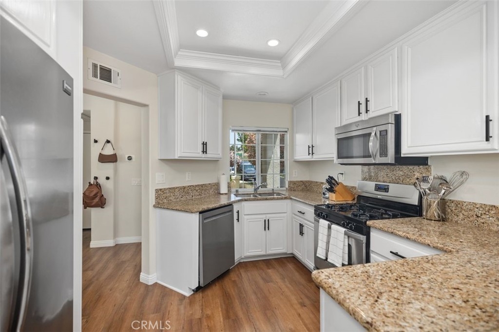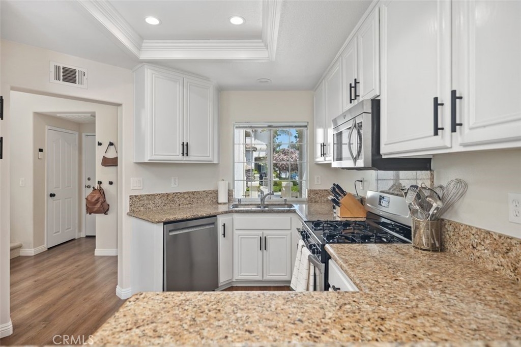 Your dream home awaits in Victoria! This home in the very popular gated Victoria community is perfectly situated on a lovely corner lot not backing to any busy streets with easy access to street parking and the advantage of a sense of openness throughout the home. The floor plan offers convenience and practicality with the second story location of three bedrooms plus a loft with play area and additional room for office or guests. The laundry is conveniently located in the children's wing. There are many updates and upgrades throughout including a kitchen with updated white cabinets and stainless steel appliances and beautifully renovated primary and downstairs bathrooms. High quality LVP floors throughout are both practical and stylish. A SimpliSafe home security system, a Nest thermostat, newer AC, re-piping in 2022, Smart, voice controlled lighting throughout the home, remote control window shades inside and sunshades outside are features designed for comfort and convenience for the homeowner of today. Newer floor to ceiling storage cabinets, above-car storage and a bike storage system have been masterfully designed for maximum usage of the two car garage. The downstairs is an open floor plan (don't miss the fun hideaway under the stairs!) that flows into the wonderful outdoor space with a generous size patio as well as a yard for play and sports. The professionally landscaped yard includes dramatic landscape lighting, nice tree foliage for privacy and fashionable string lights over the patio. Not only is the community directly across the street from the award winning Oak Grove Elementary school and Acorn Park, but it is also just around the corner from the popular Don Juan Avila Middle school. Shopping, movie theaters and restaurants are just minutes away and the easily accessible toll road and freeways allow a good options for commuting. Your dream can come true!