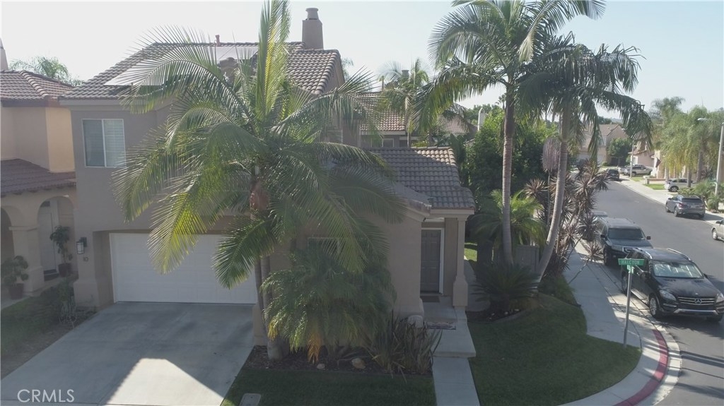 Great location on this detached home - corner lot (only one neighbor to the side). Larger than average lot with nice side yard. New exterior paint ! and lawn area in front. The floorplan offers 3 bedrooms with two master suites upstairs (each with their own bath) and one bedroom downstairs with a closet - great for office or separate den. Laminate flooring in the downstairs. Kitchen has beautiful quartz counter top with tile accented backsplash. Stainless steel package in kitchen with newer stainless steel sink, gas range, & huge pantry. Wood shutters & roman shades cover the windows. Fireplace is an electrical gas log and is tile faced. Many upgrades - newer ceiling fan, + ceiling fan in 2nd bedroom. Newer A/C compressor, newer water heater. Master bedroom has a walk in closet and a 2nd wardrobe + mirrored closet doors. Property has PEX piping - replaced about 6 years ago. Property has a solar system from SunRun which is easily transferrable. Walk to Oak Park! Low HOA dues of $90/month which includes gated community & pool & street maintenance. Aliso Viejo master HOA includes parks & recreation throughout the city - $124 paid quarterly. Schools, shopping, transportation, and recreation nearby - a wonderful community in Aliso Viejo.